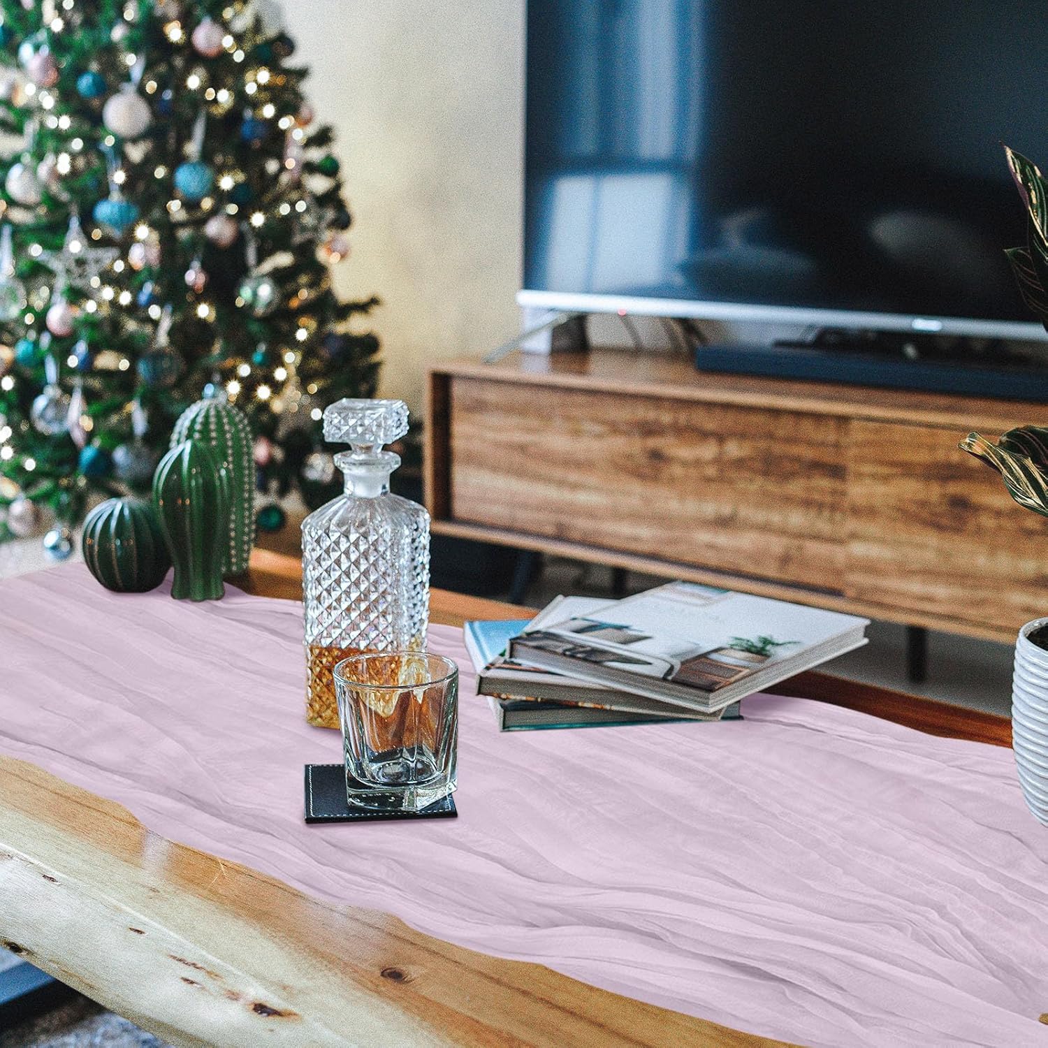 - 【Soft Material】: Made of high quality polyester, soft to touch, comfortable and durable. Wrinkled design cheese cloth farbic, delicate edges and stitches, adopts seamless technique makes this sheer table runner more graceful than traditional fabrics. Our cheesecloth wedding table runners are durable, the colour stays for a long time, does not fade and can be reused.