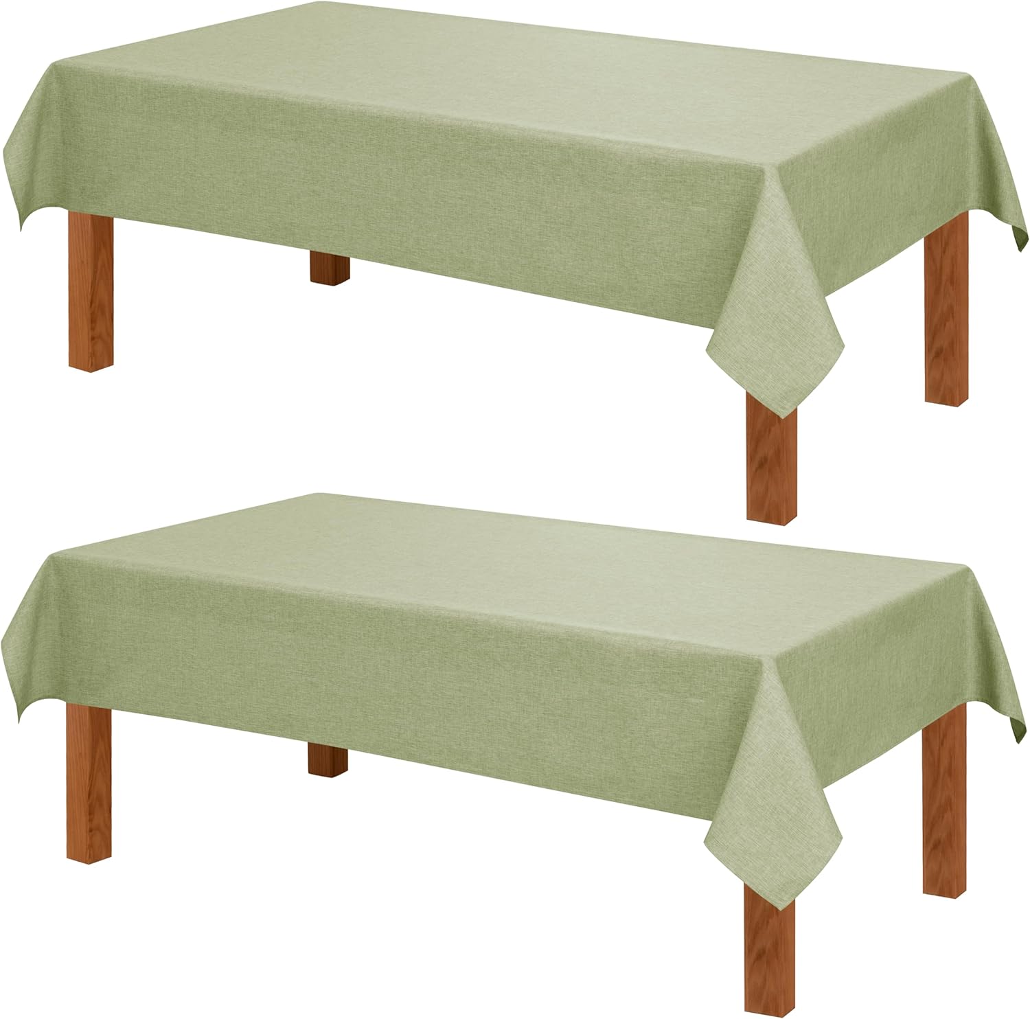 Hiasan 2 Pack Faux Linen Rectangle Tablecloth - Wrinkle and Stain Resistant Washable Table Cloth for Kitchen Dining Room Holiday Table Cover for Party Dinner, Green, 60 x 84 Inch