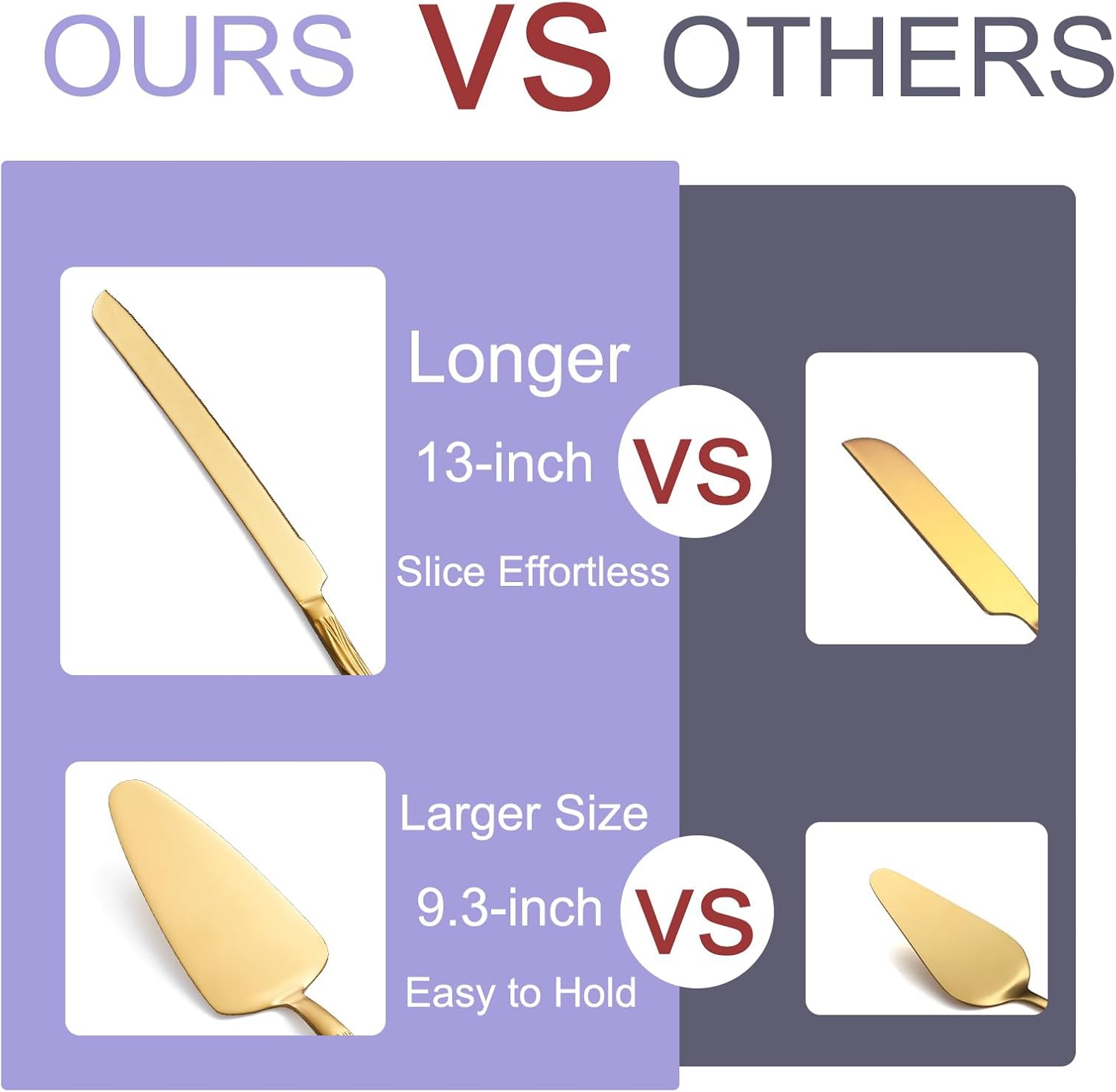 - Comfortable and Effortless Use: Experience effortless slicing with the perfectly sized 13-inch Cake Knife and the 9.3-inch Cake Pie Pastry Server, ensuring comfortable use for any occasion