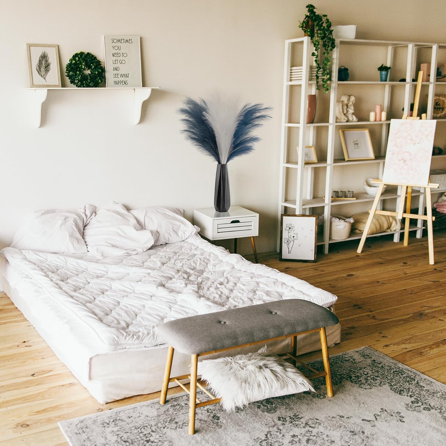 - Minimalistic&Elegant Pampas Grass Decor: Really nice faux pampas grass for home decor, display in your hallway, kitchen, living room, bedroom, front room, dining room, or entryway... any space. Pampas grass are also a great addition to weddings, flower arrangements, lifestyle photography, party, bohemian decorating and etc