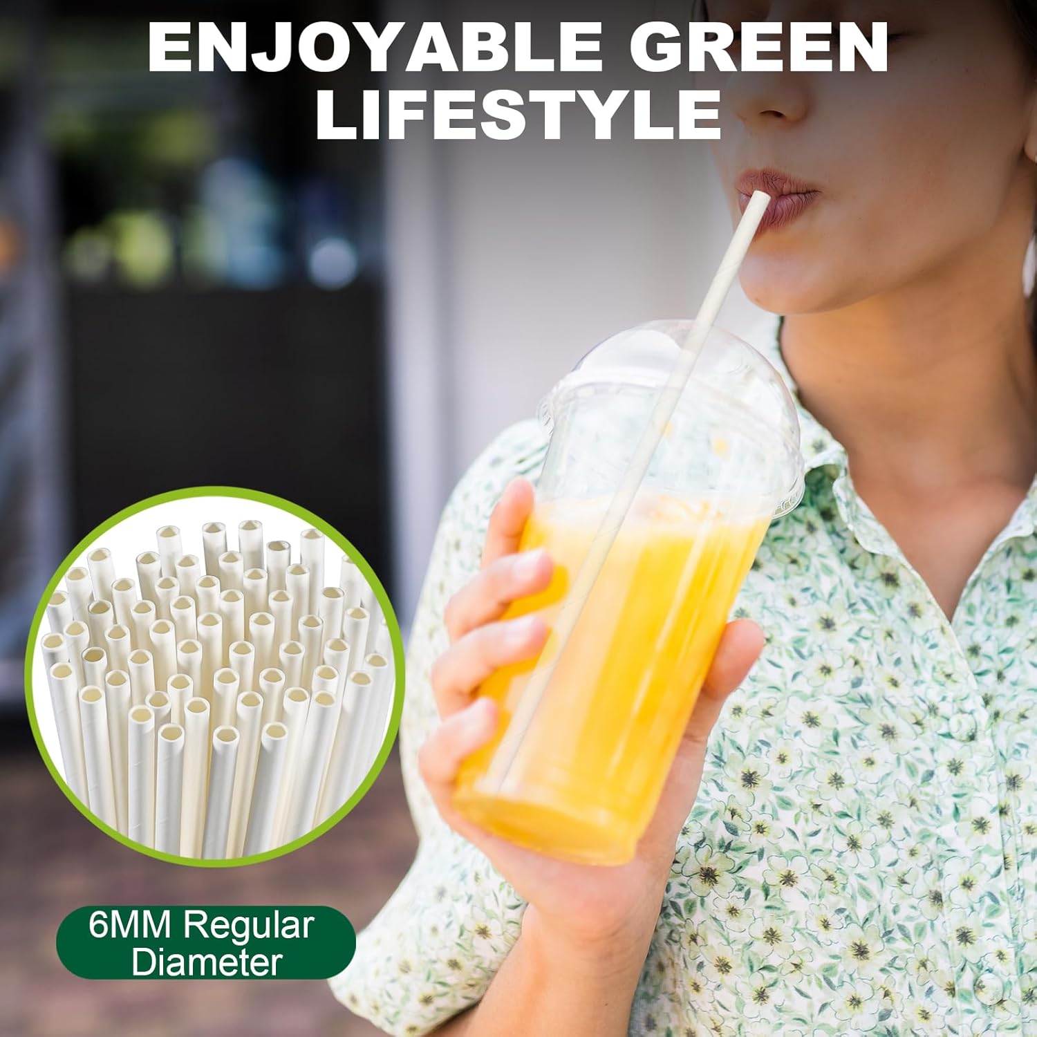 - Extra long disposable paper drinking straws, length 10.25"/260mm long, 0.24"/6mm regular diameter