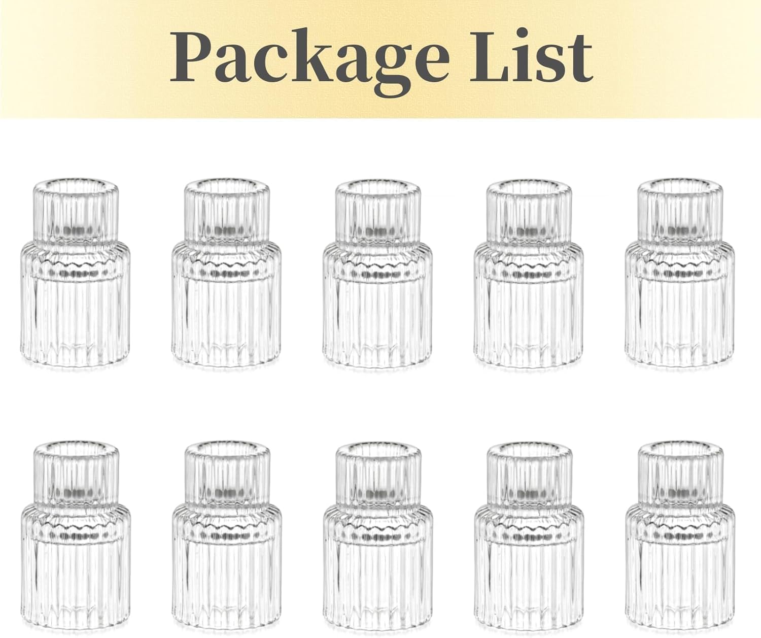 - 【Multiple Occasions Use】The candlestick holders bulk comes with 10 pcs clear ribbed glass candle holder. It's suitable for holiday celebration like Valentine's day, Christmas, Thanksgiving, or special occasions like weddings, parties, engagements. Its simple & dainty design will make a great addition to any decor.