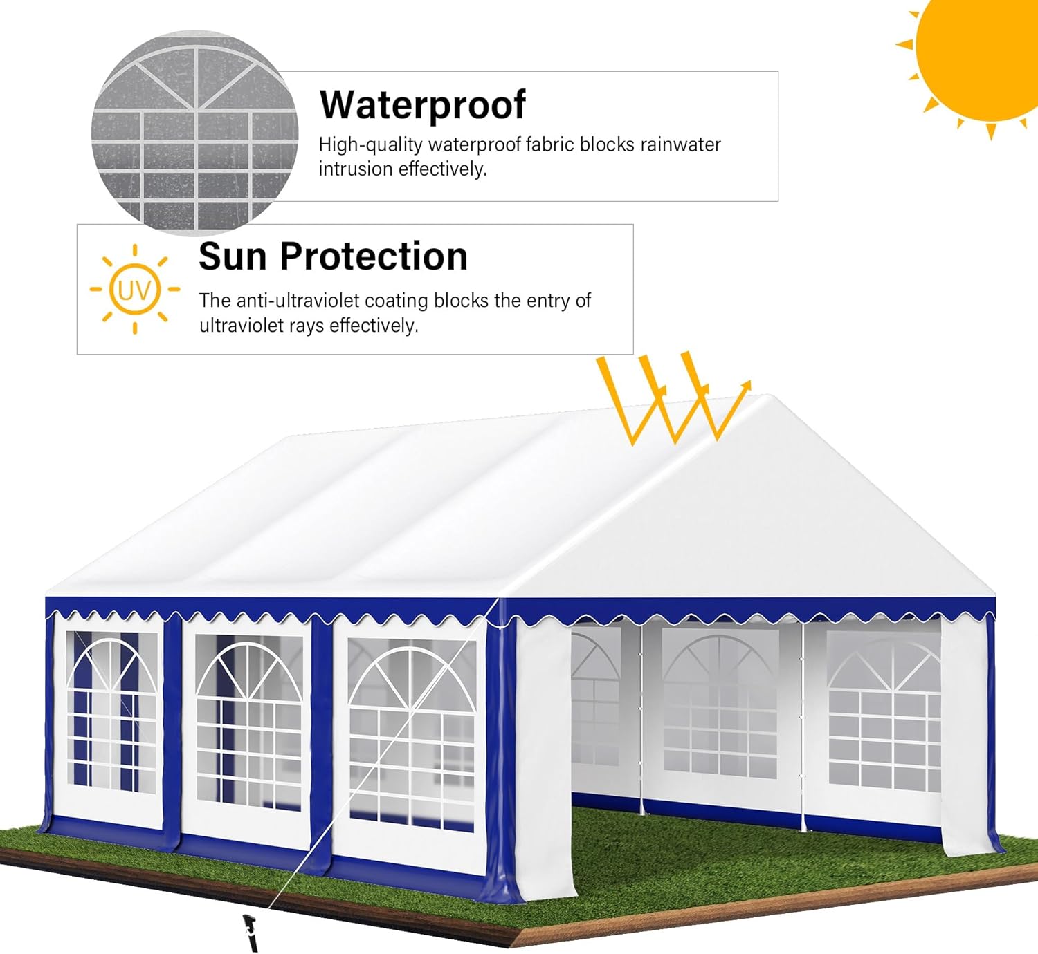 - Upgraded Galvanised Frame: The party tent is framed with heavy-duty thickened 38 mm upgraded galvanized steel tubing for durability. The surface is powder coated to prevent rust and corrosion