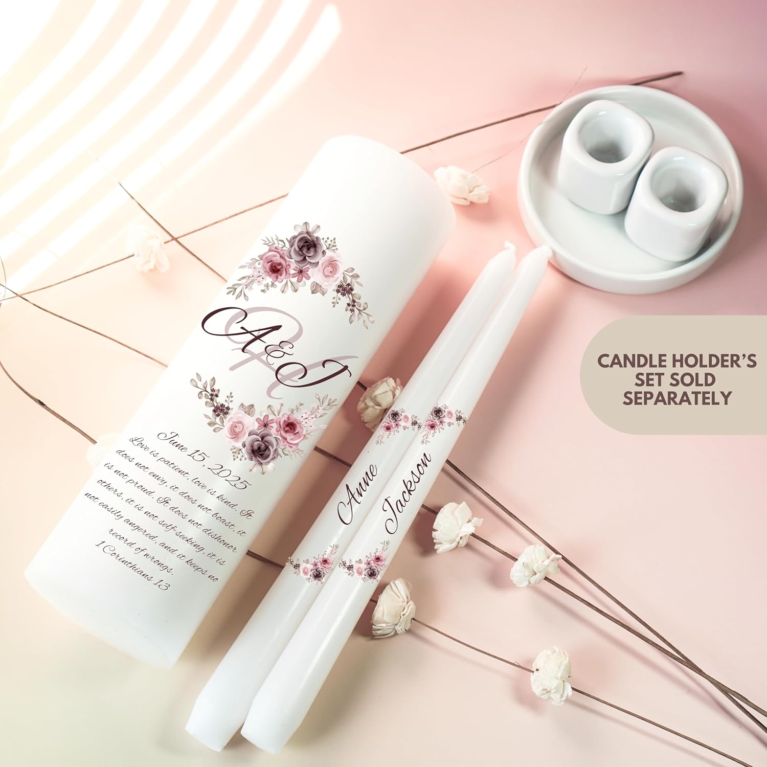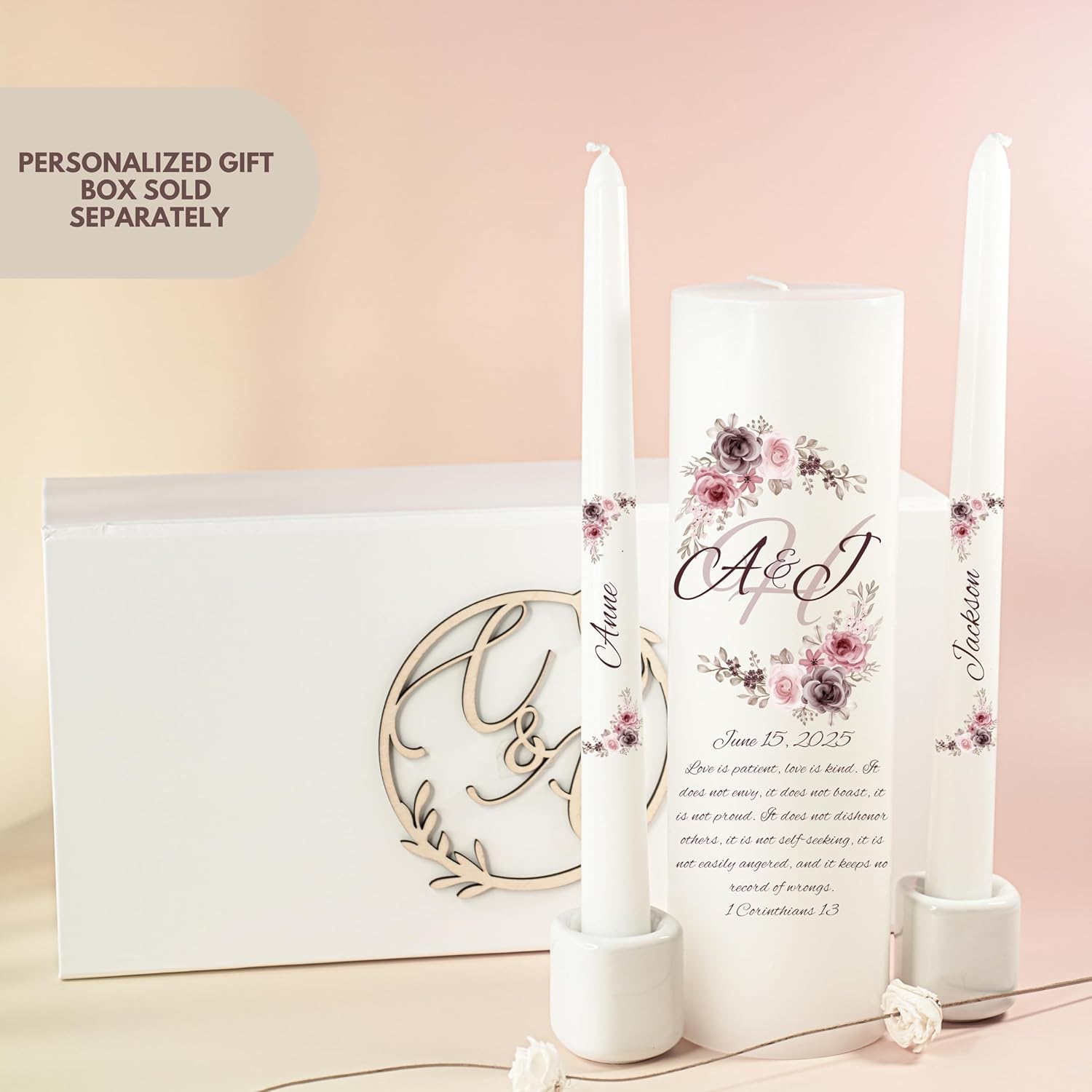 - Only premium quality materials on all our personalized unity candles.