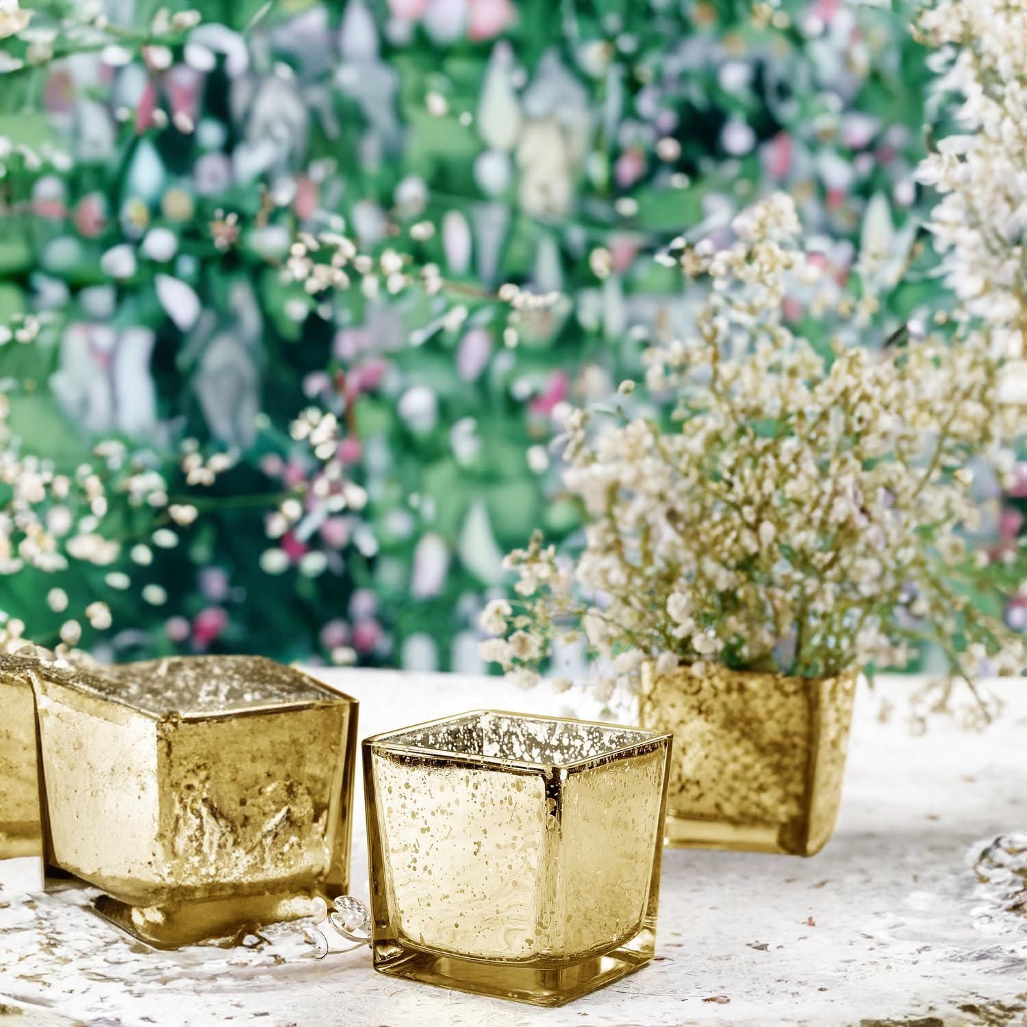 - Included: 1 gold speckled cubed tea light votive candle holder, carefully packaged, vase filler and candle not included