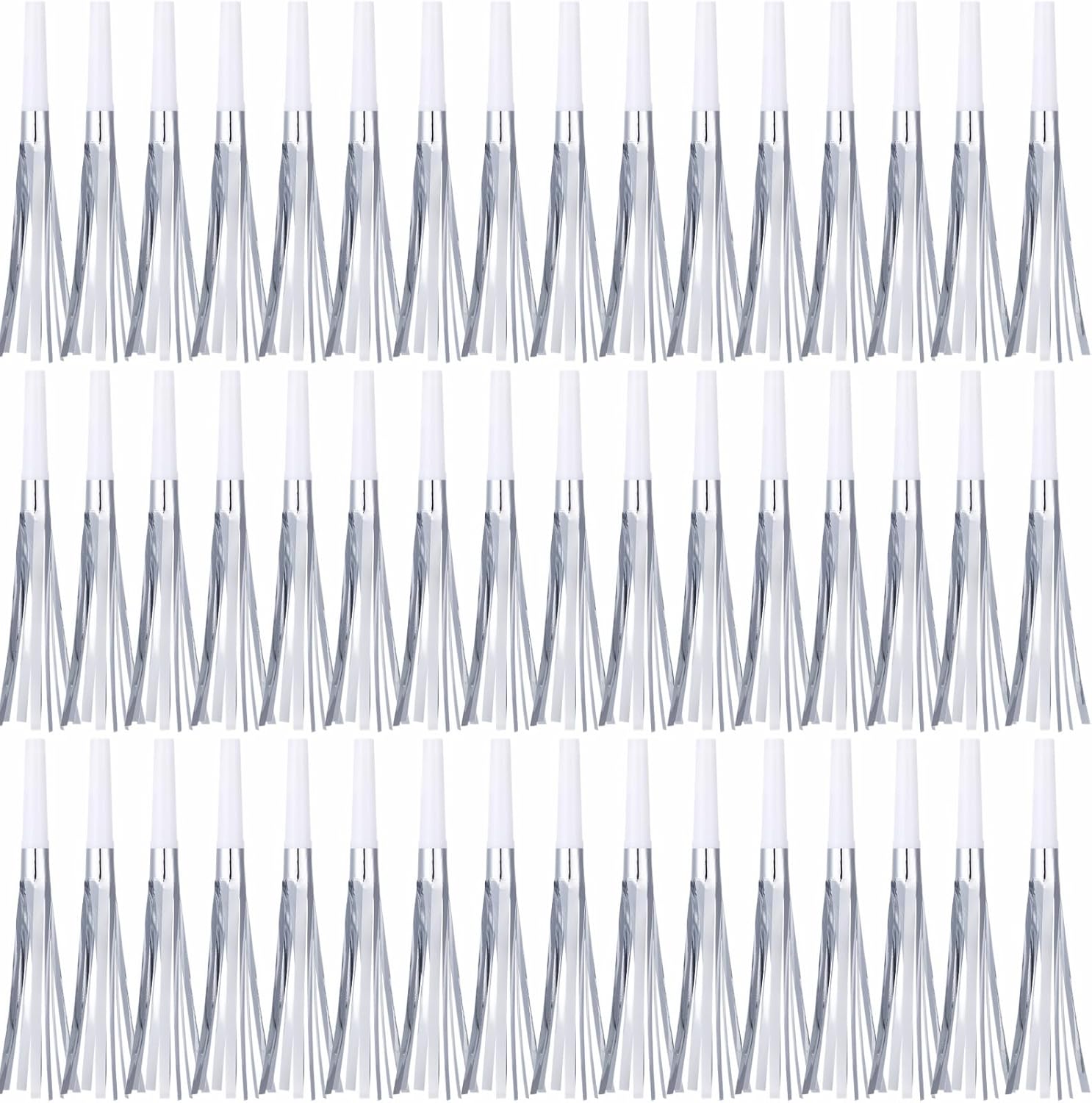 48 Pcs Silver Noise Makers Glitter Metallic Fringed Noise Makers Horns for Baby Shower, Kids Birthday, New Year Party Favor - Silver