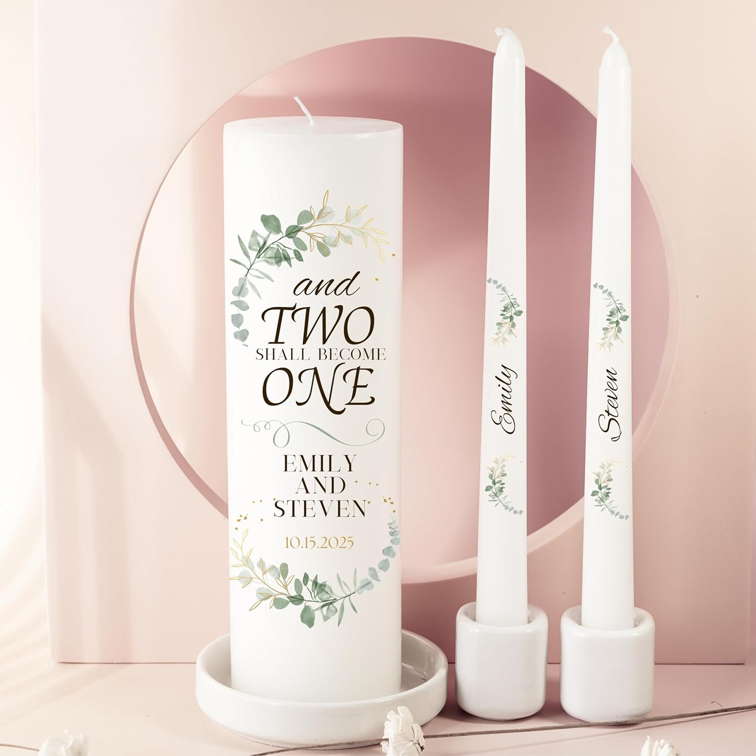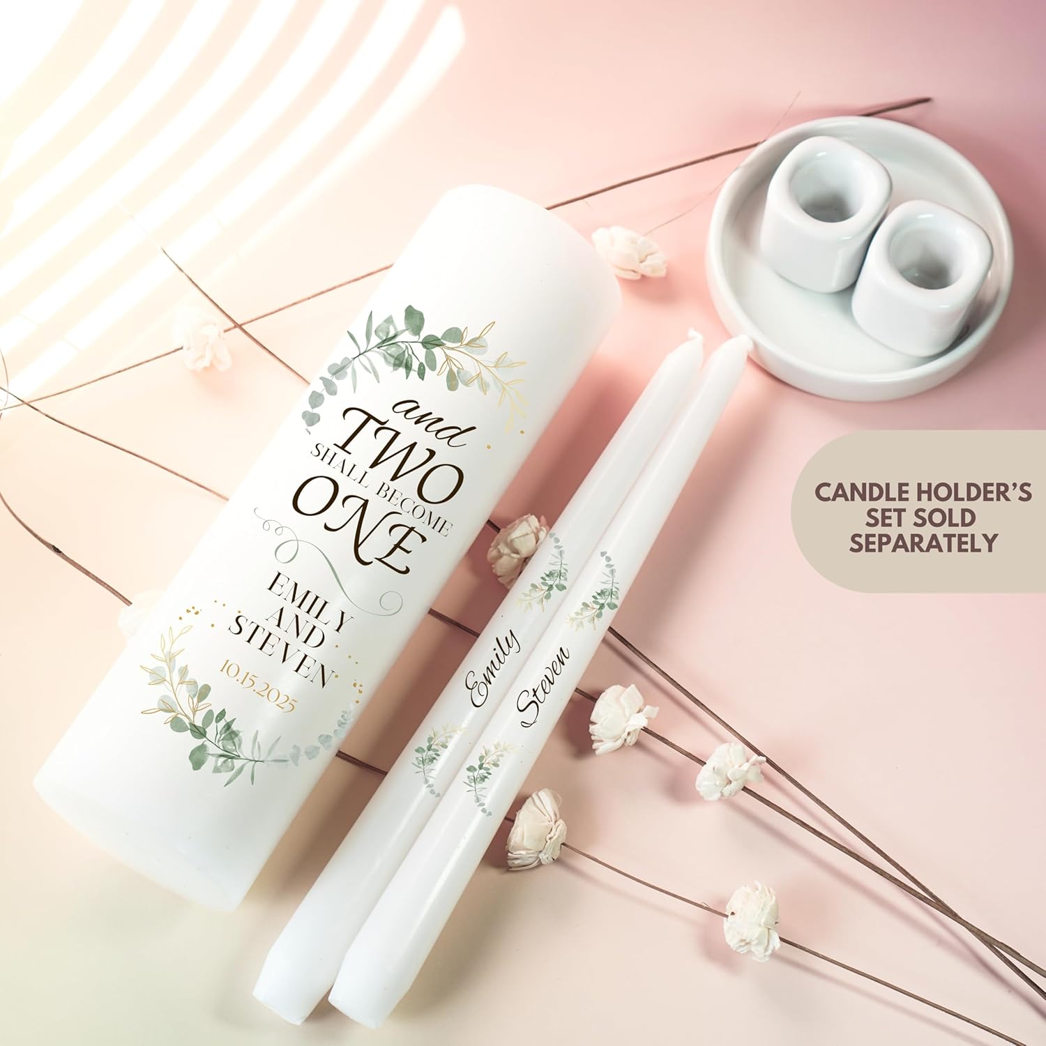 Unity Candles for Wedding, Modern Unity Set, Custom and Personalized Pillar and Taper Candles with Quote, Unscented White Premium Wax, Religious and Wedding Ceremony, Special Events (Custom Date)