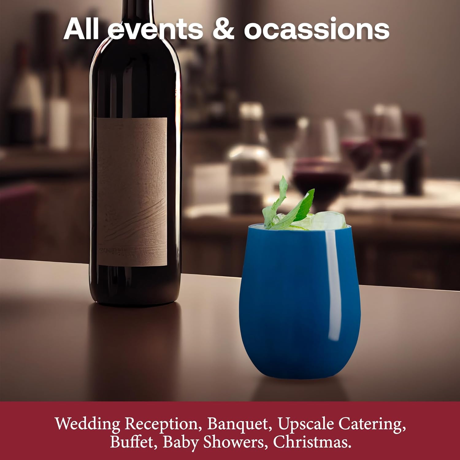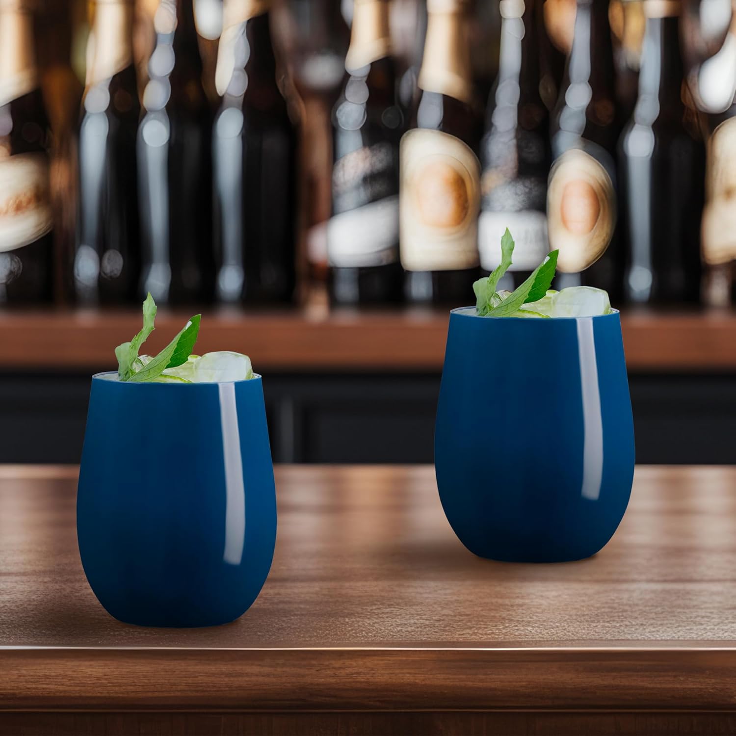 - STYLISH NAVY STEMLESS DESIGN – These 12 oz stemless wine glasses in an elegant navy add a unique touch to weddings, parties, and special events, perfect for creating a modern, upscale look.