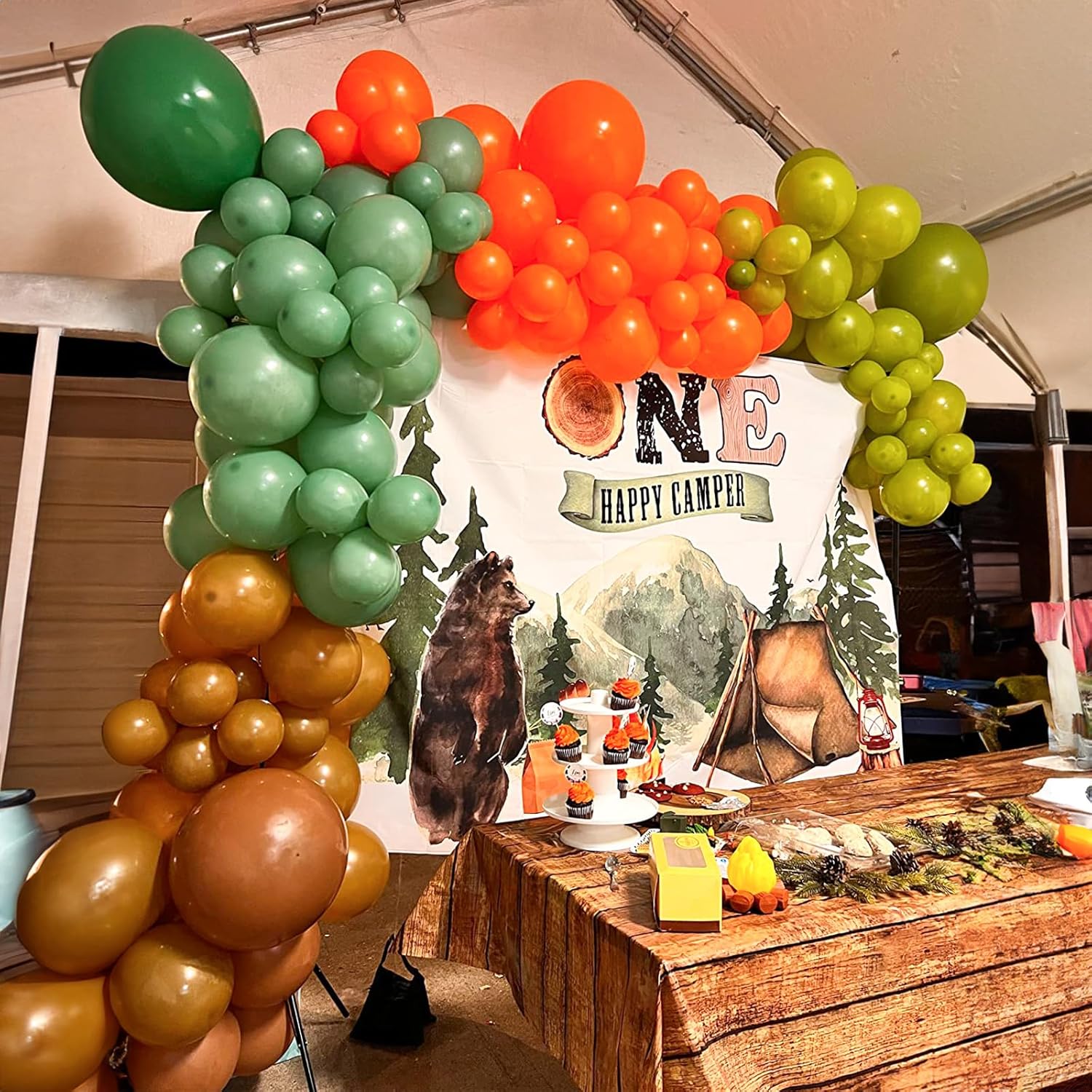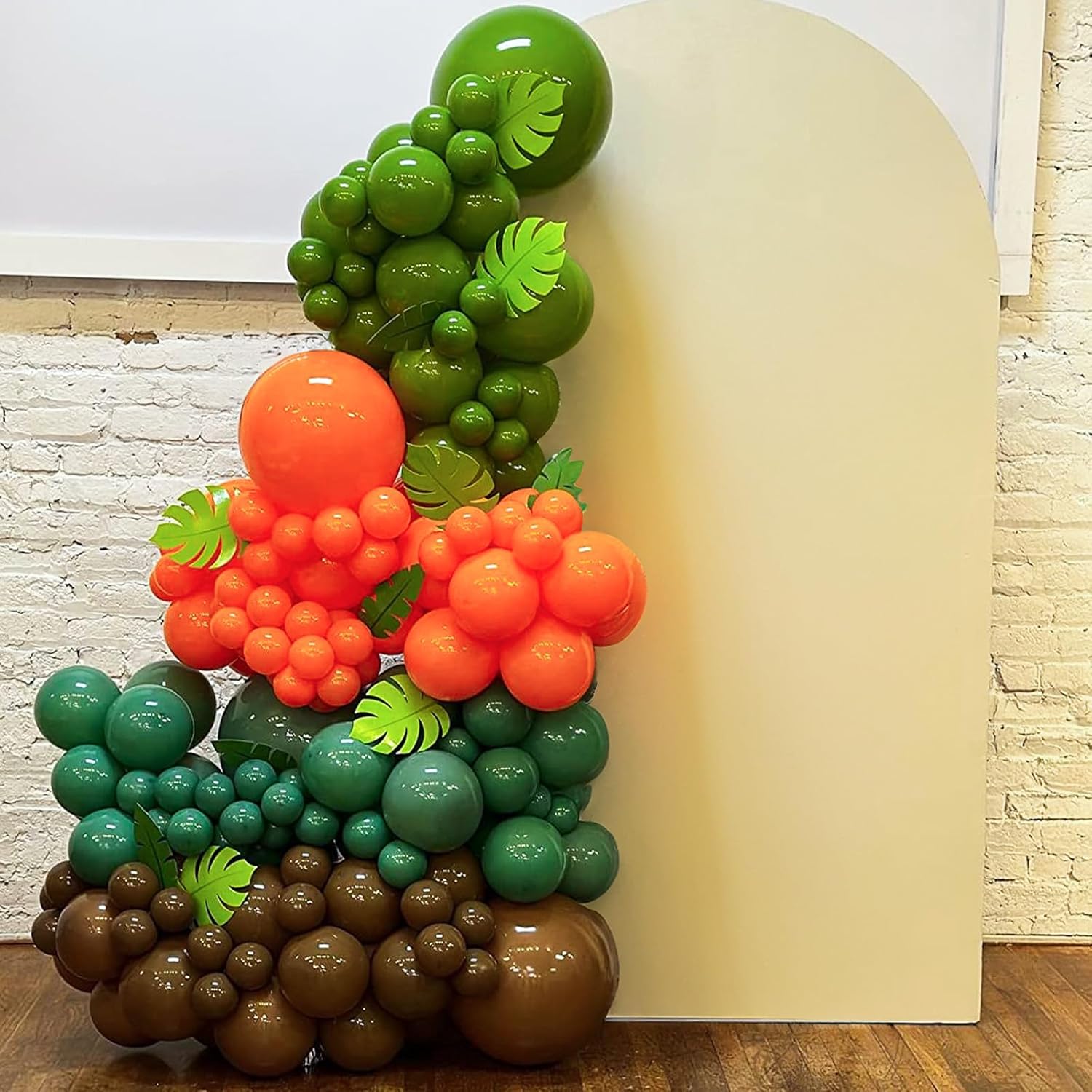 - Green Orange Balloons: 35Pcs 12 inch balloons and 1 white ribbon set. Includes 10pcs orange balloons, 10pcs brown balloons, 8pcs pea green balloons and 7pcs olive green balloons.