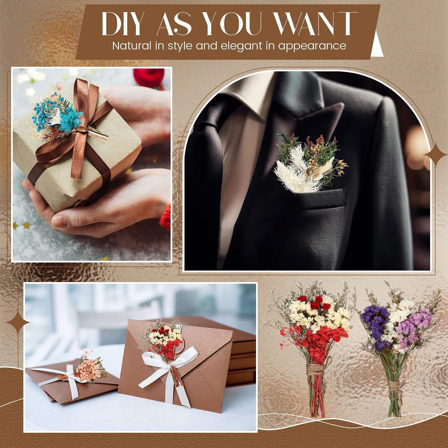 - Abundant and Versatile Collection: you will receive 12 dried bouquets which are beautiful and energetic in various colors and styles; This abundant quantity ensures that there are plenty for your daily use, replacements, and varied decorative applications; This collection suits different people's tastes, making your Bohemian wedding or home decoration project more lively and refreshing