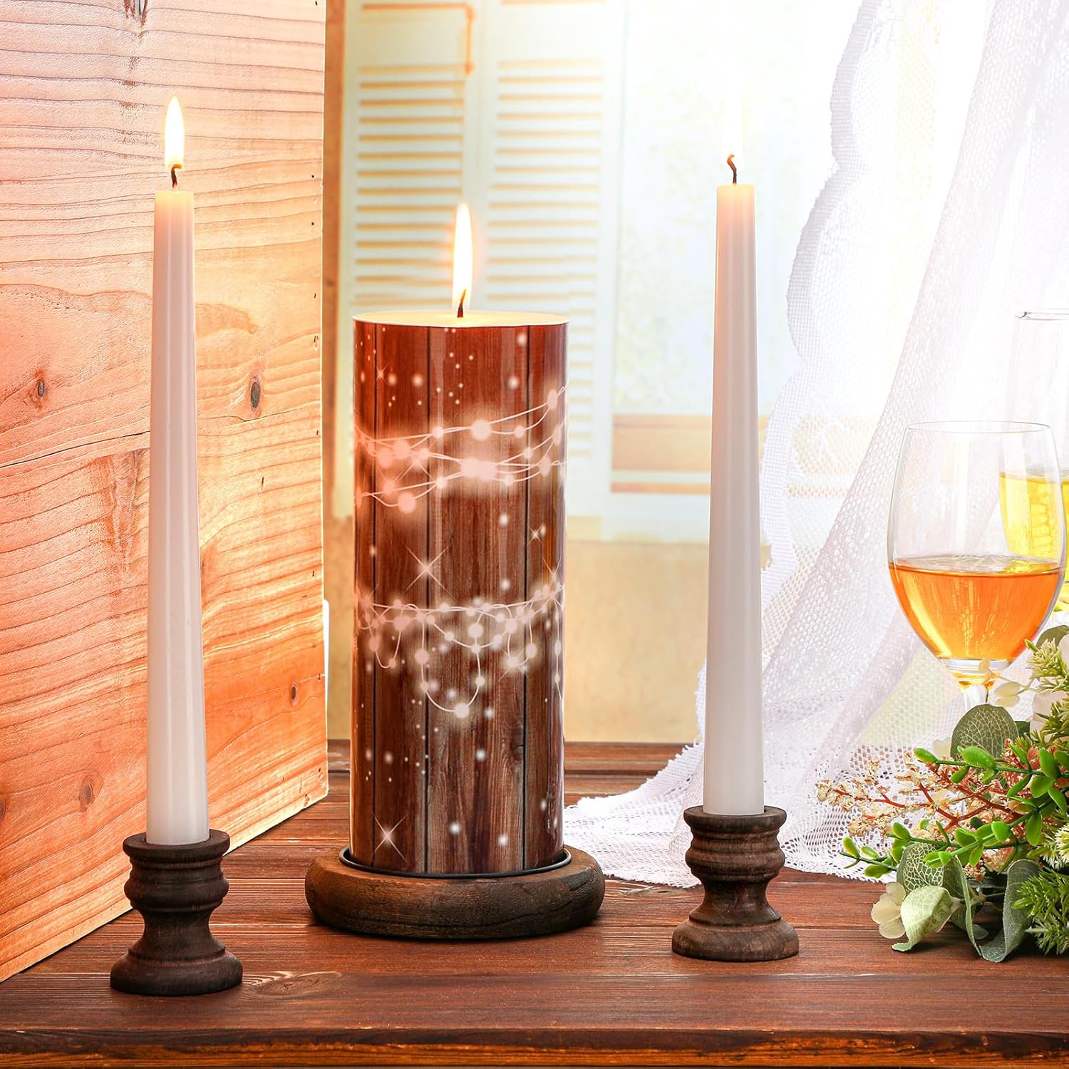 - Reliable Material: the candles for wedding are made of wax material, reliable and safe to use, and the decoration is manually pasted with glue, there may be glue overflow, but it does not affect the appearance, kindly noted; The candle holders are made of wood, thick and sturdy, can be applied for a long time