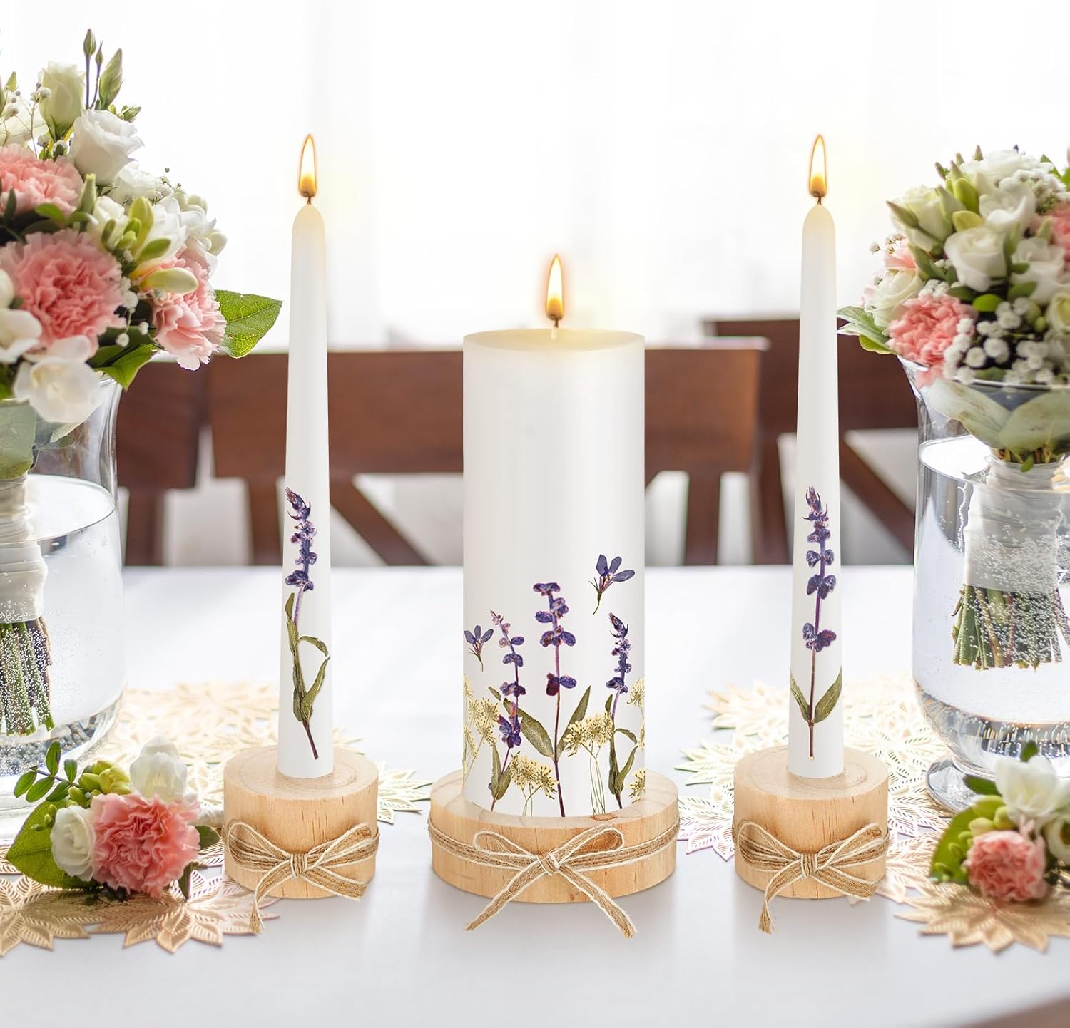 - Reliable Material: the candles for wedding are made of wax material, reliable and safe to use, and the lace decoration is manually pasted with glue, there may be glue overflow, but it does not affect the appearance, kindly noted; The candle holders are made of wood, thick and sturdy, can be applied for a long time