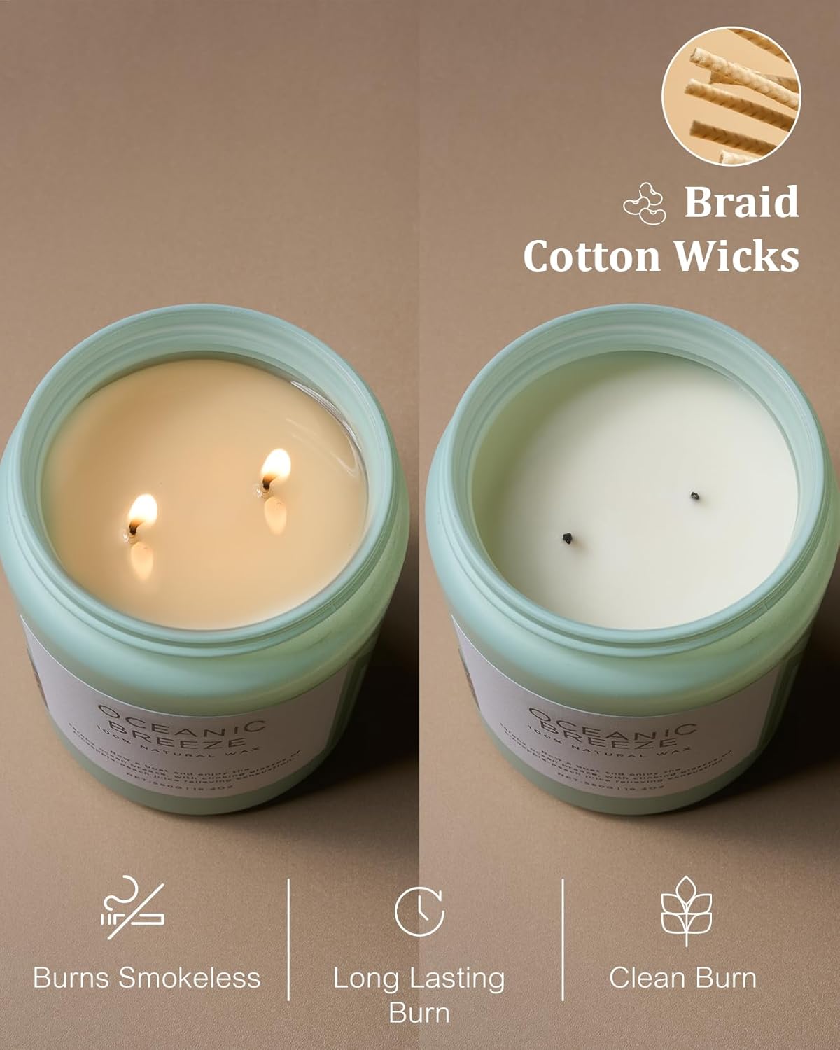 - π³ Clean Consistent & Even Burn - Using 2 American made lead-free cotton wicks for a even burn result. They're cotton flat braid wicks with paper throughout, providing increased rigidity and burn more consistently than 100% cotton wicks. Designed to reduce carbon buildup which leads to black soot.