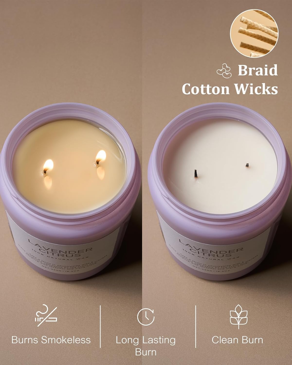 - π³ Clean Consistent & Even Burn - Using 2 American made lead-free cotton wicks for a even burn result. They're cotton flat braid wicks with paper throughout, providing increased rigidity and burn more consistently than 100% cotton wicks. Designed to reduce carbon buildup which leads to black soot.