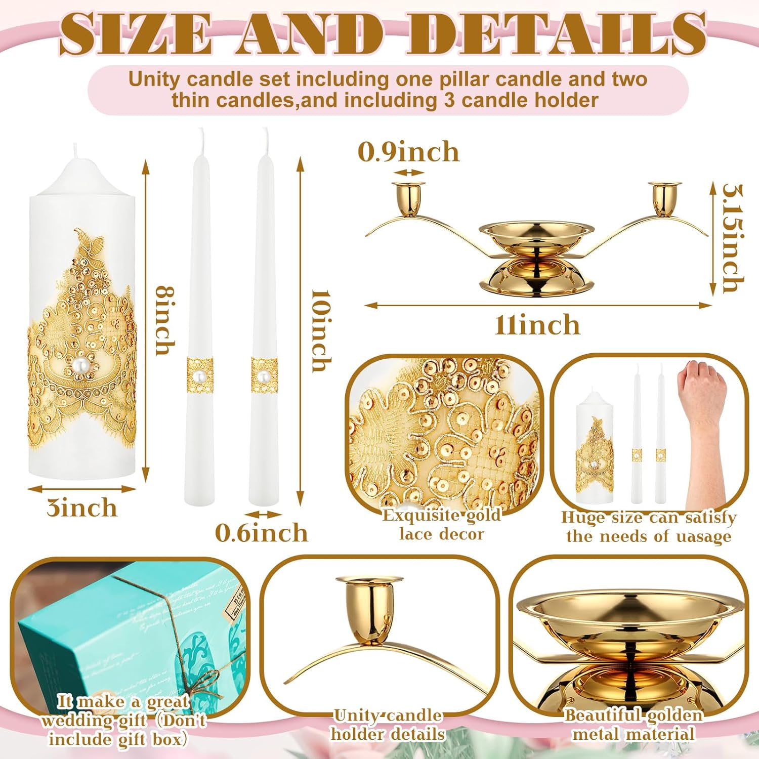 - Nice Gifts: the unity candles and holders are practical and decorative, will be an exquisite gift for your friends, family members, girlfriend, colleagues and other people you love, suitable for weddings, anniversaries, birthday, home decor, dinner parties, festivals, formal events, weddings, to add luster to these occasions