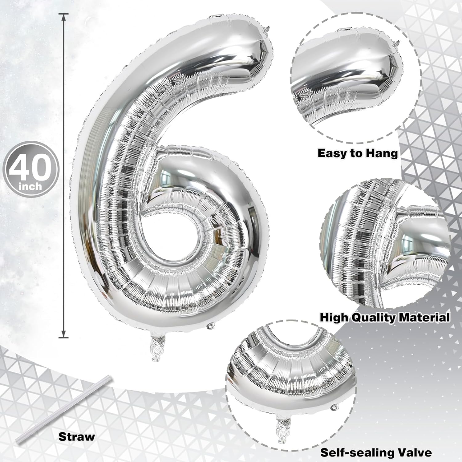 - π Silver Number 16 Balloon: Our package included 40 inch number 1 & 6 balloon and 1pcs straw. Simply inflate the balloon using the straw, and you're ready to party! Silver number foil balloons are the best for girls or boys birthday party decoration.