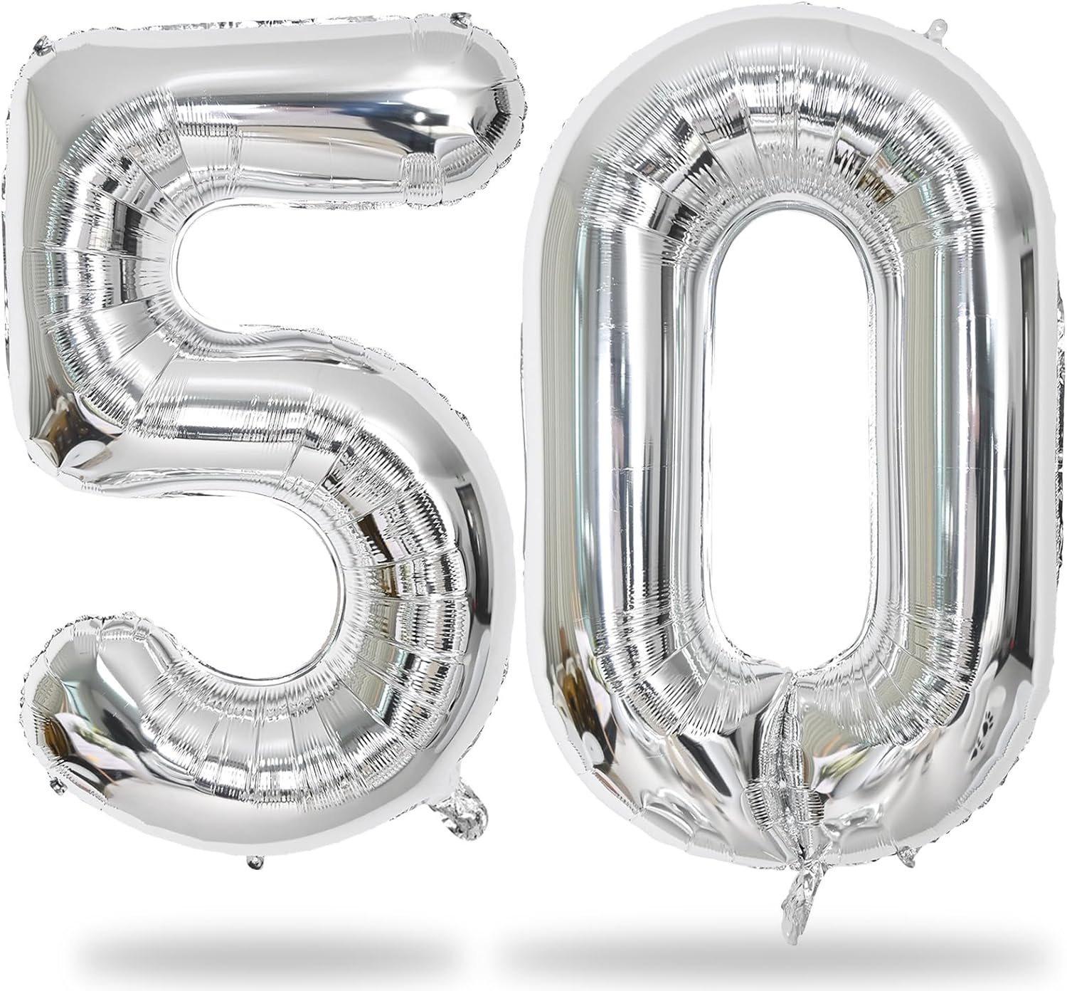 - π Silver Number 50 Balloon: Our package included 40 inch number 5 & 0 balloon and 1pcs straw. Simply inflate the balloon using the straw, and you're ready to party! Silver number foil balloons are the best for women men birthday party decoration.