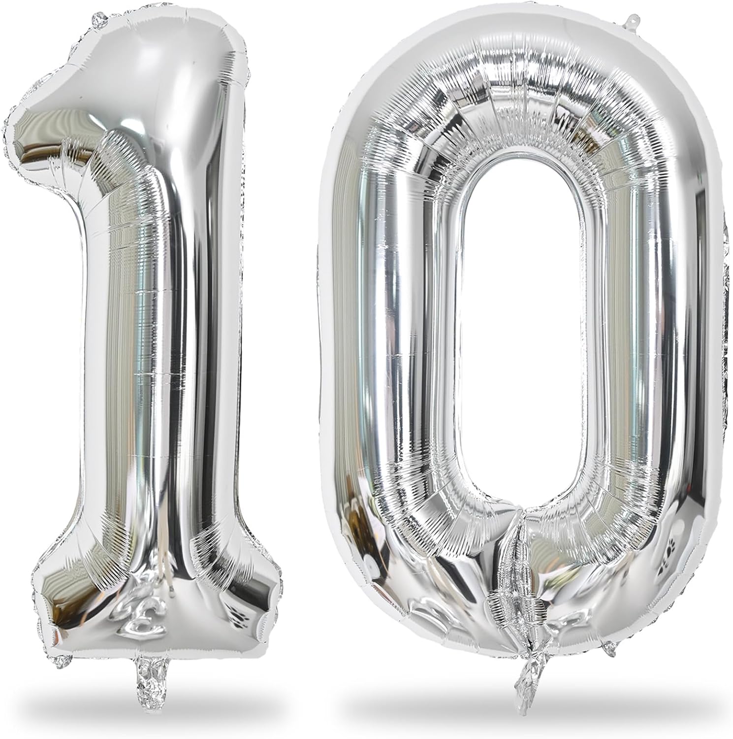 - π Silver Number 10 Balloon: Our package included 40 inch number 1 & 0 balloon and 1pcs straw. Simply inflate the balloon using the straw, and you're ready to party! Silver number foil balloons are the best for girls or boys birthday party decoration.