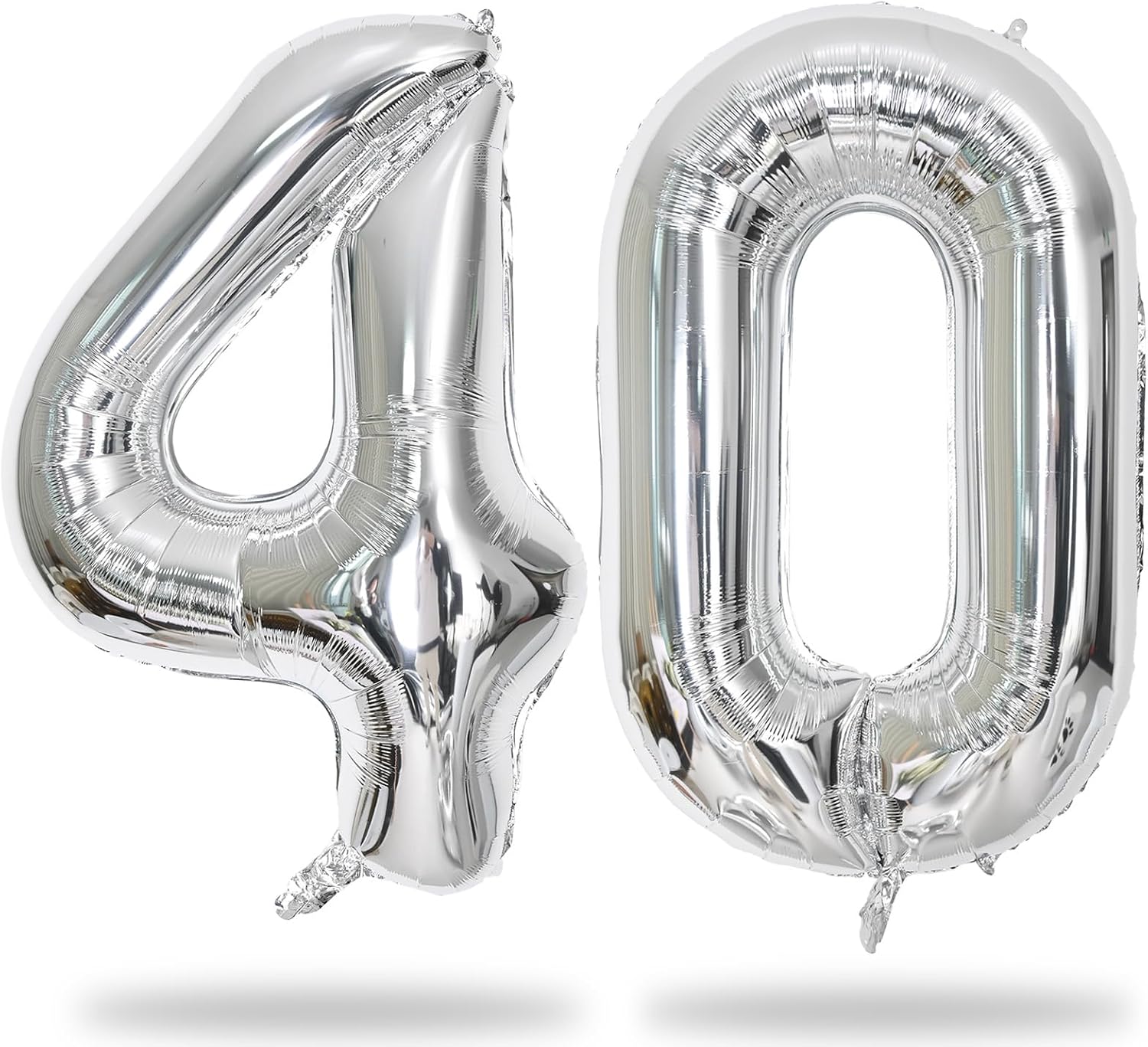 - π Silver Number 40 Balloon: Our package included 40 inch number 4 & 0 balloon and 1pcs straw. Simply inflate the balloon using the straw, and you're ready to party! Silver number foil balloons are the best for women men birthday party decoration.
