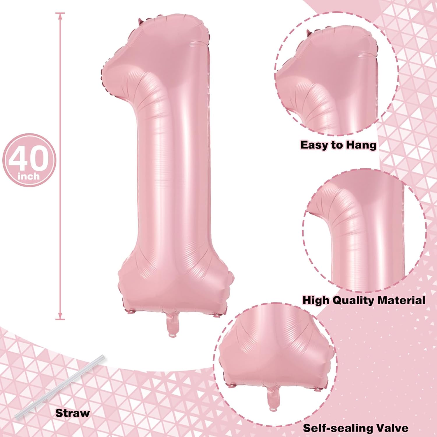 - 💓 Pastel Pink Number 11 Balloon: Our package included 40 inch number 1 & 1 balloon and 1pcs straw. Simply inflate the balloon using the straw, and you're ready to party! Light pink number foil balloons are the best for girls birthday party decoration.