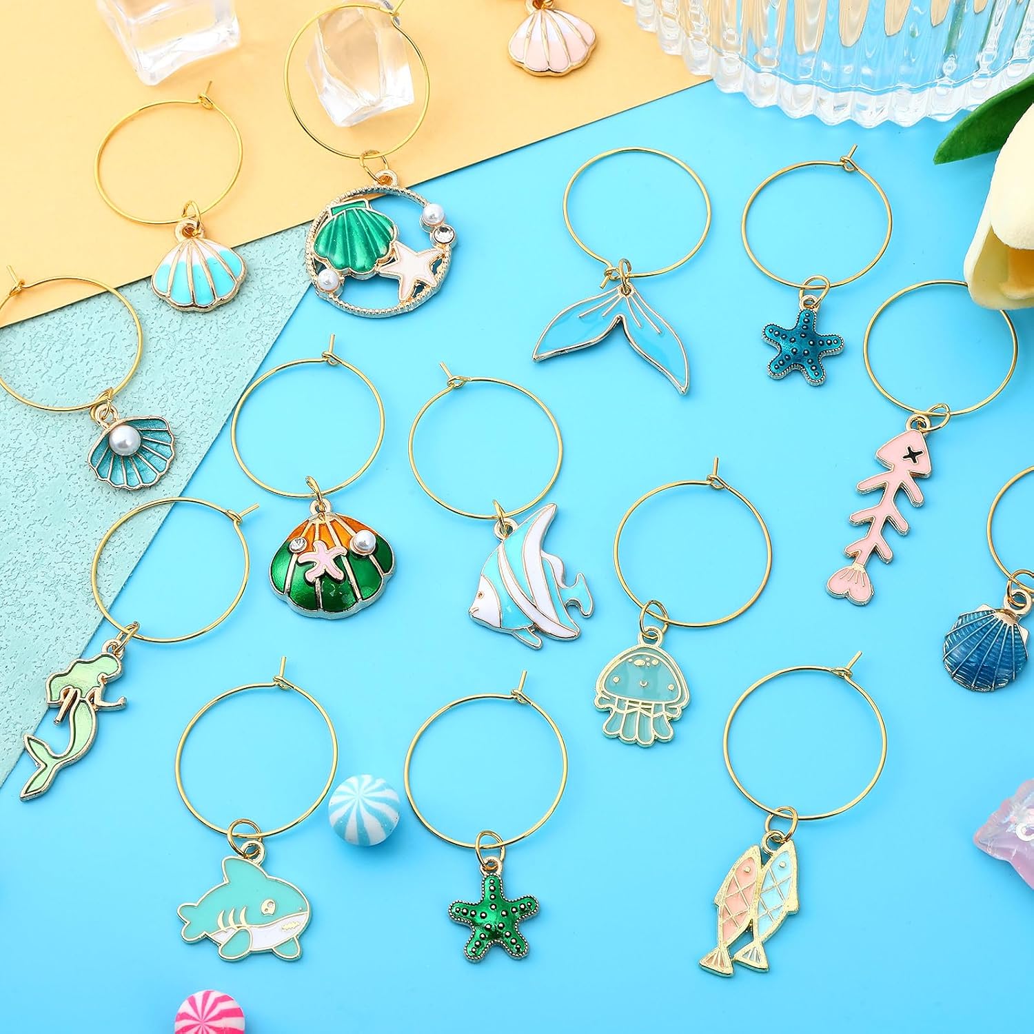 SANNIX 24pcs Ocean Wine Glass Charms for Stem Glasses, Wine Party Decorations