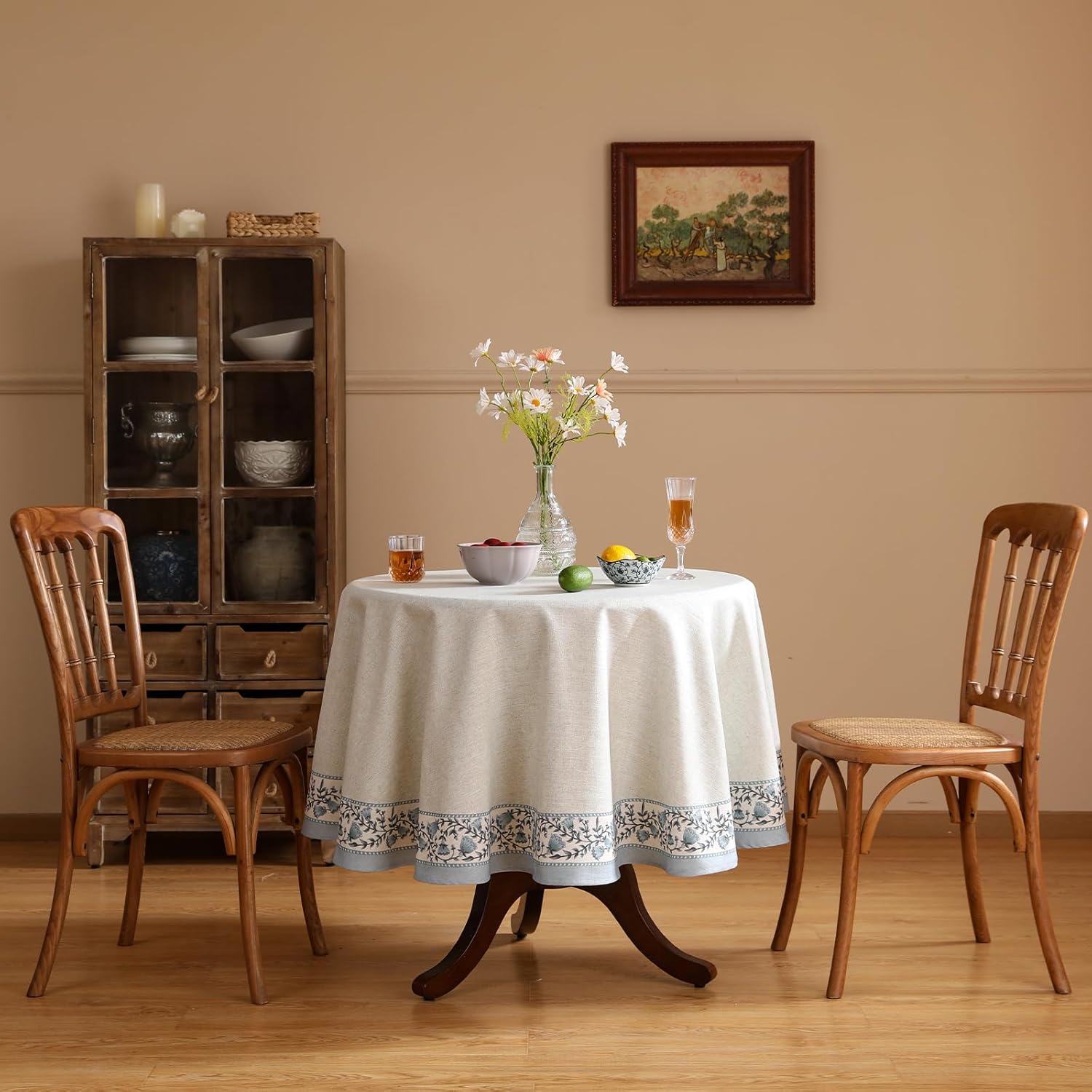 ISAENNE Designer Vintage Linen Elegant Small Round Tablecloth,Chinoiserie Floral Table Cloth,Wrinkle Resistant Decor Table Cover for Dining Thanksgiving Kitchen,Diameter 55"-Segerman B