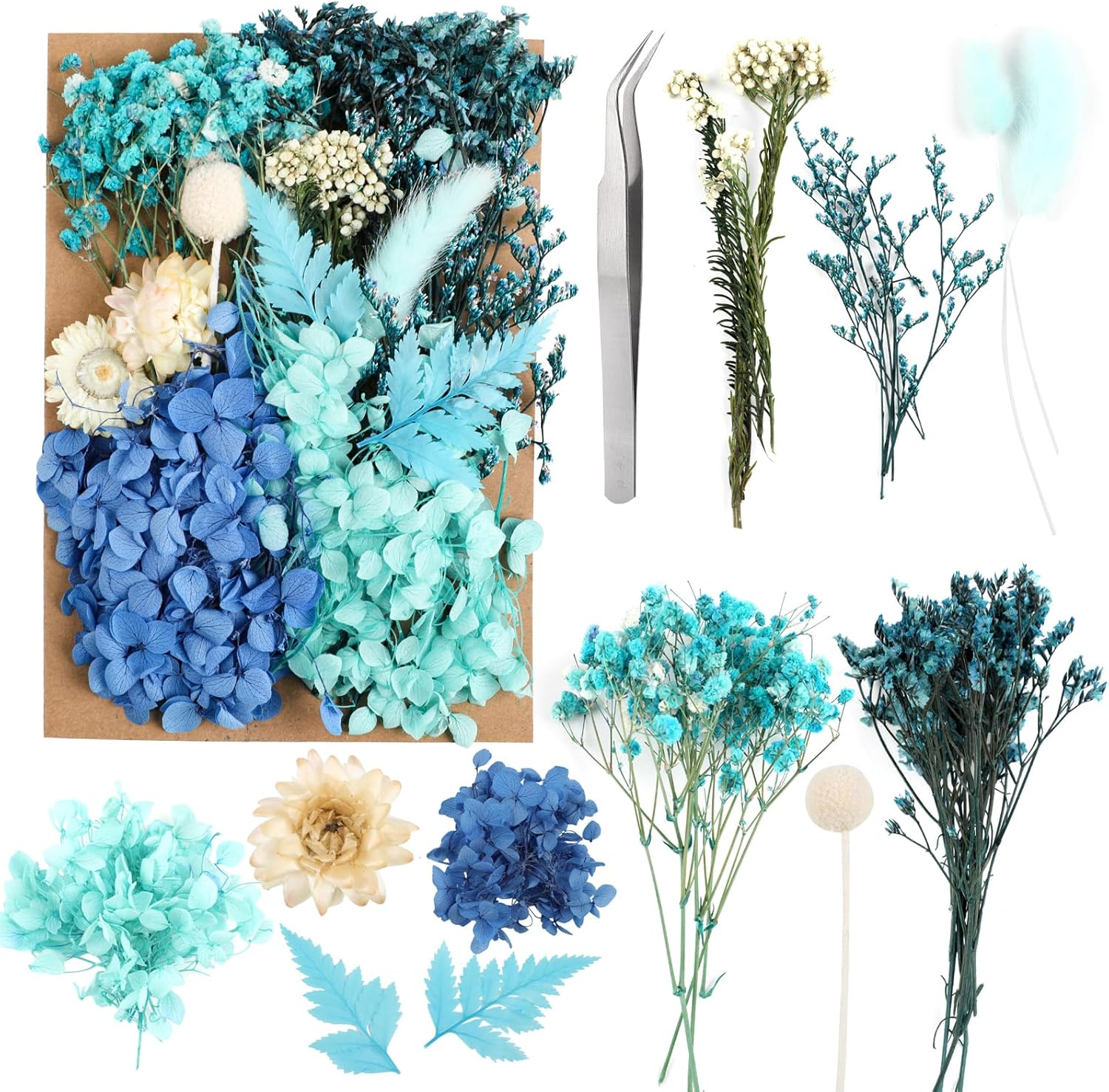 Dried Flowers,Dried Flowers Set for DIY Scrapbook Accessories Flower Arrangements Flower Decoration Wedding Decoration(Blue)