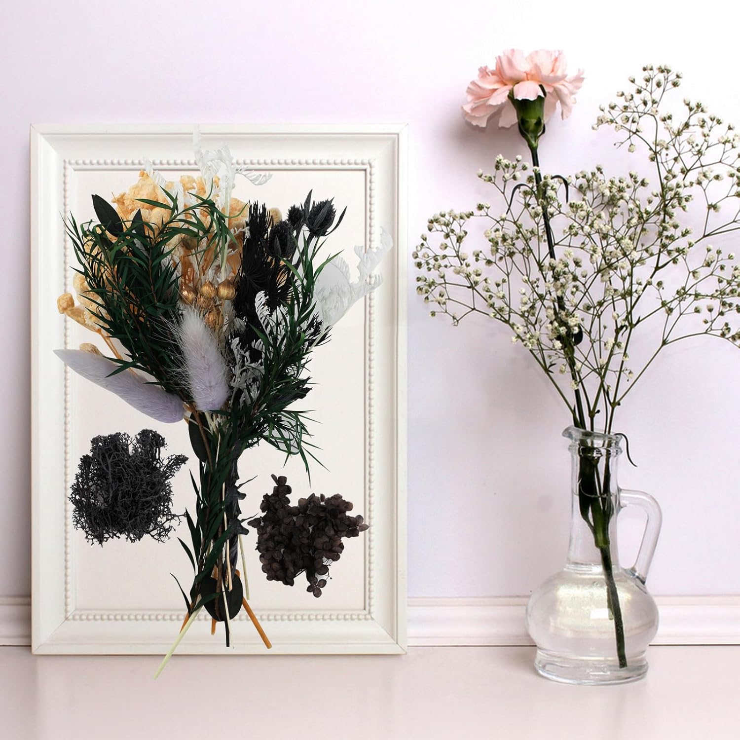 Dried Flowers,Dried Flowers Set for DIY Scrapbook Accessories Flower Arrangements Flower Decoration Wedding Decoration(Black)