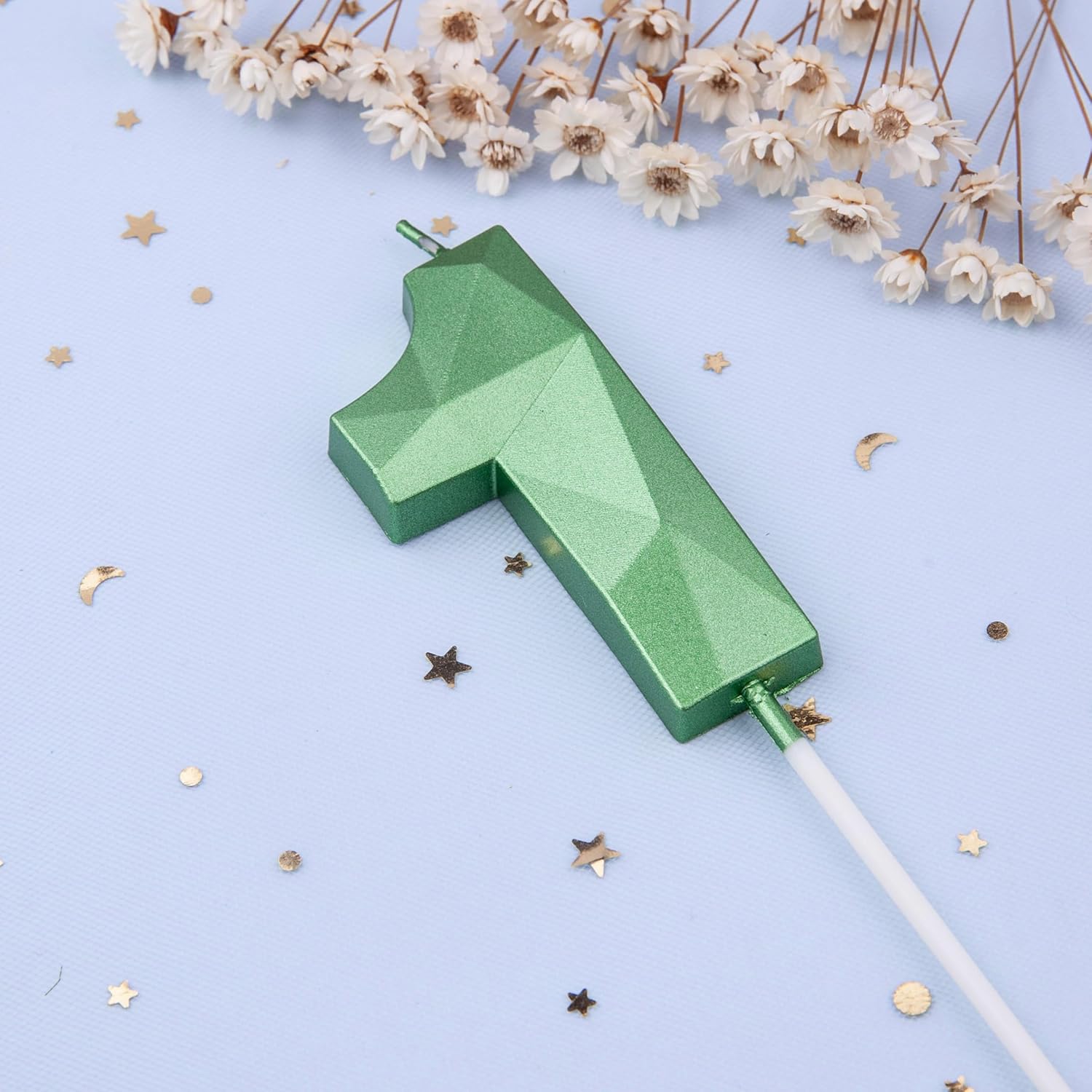 - New: 2.76 Inch Large Crystal Green 1 Number Birthday Candle designed to make your cake and birthday a unique and truly inspiring event.