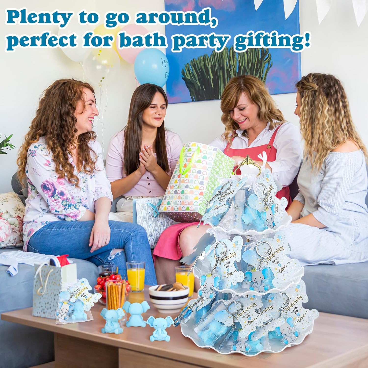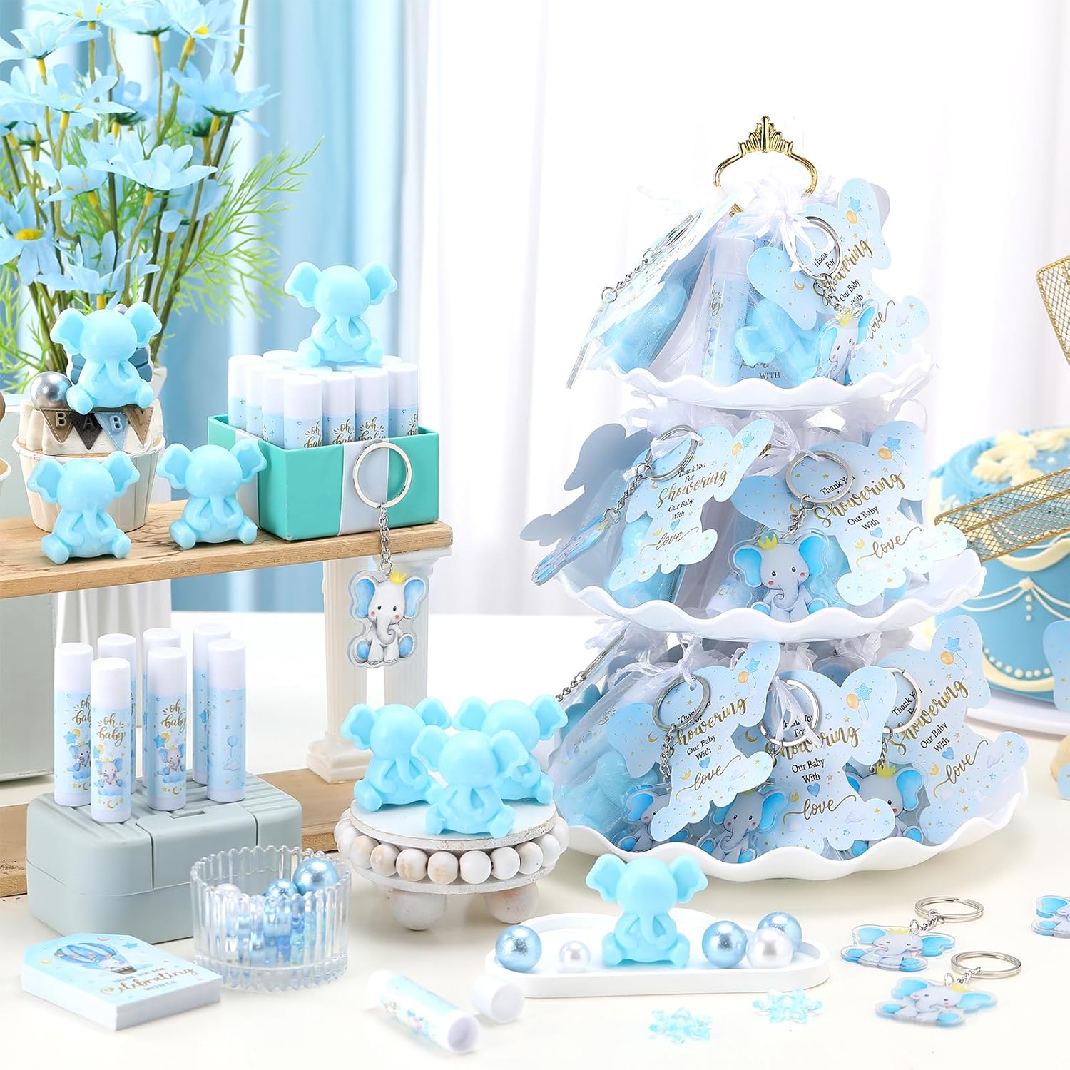 - Complete Baby Shower Favor Sets: enjoy a comprehensive baby shower favors set that are suitable for a baby shower; Each package includes 48 lip balms, 48 elephant shaped soaps, 48 elephant keychains, 48 organza bags, 48 thank you tags, and 48 elephant shaped cards; These can be individually packaged in organza bags alongside a thank you tag, offering a sophisticated and heartfelt gesture to appreciate your guests