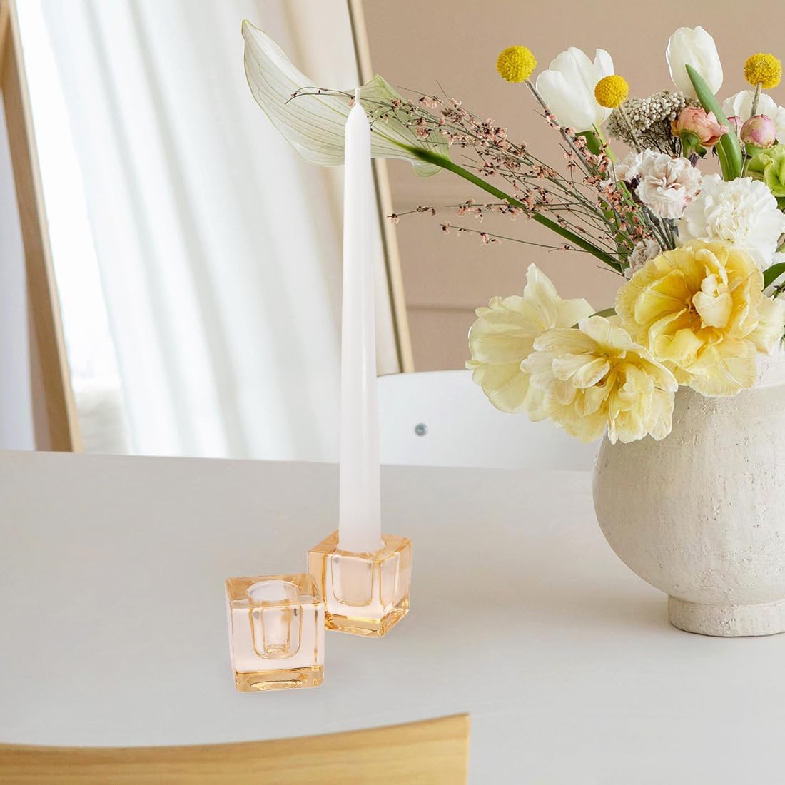 - Candle Holders Size: The size of each glass candlestick is 1.6 x 1.6 x 1.67 inches. They are suitable for candles with diameters from 0.6 inches to 0.9 inches, both standard taper real wax candles and flameless taper candles can be used.