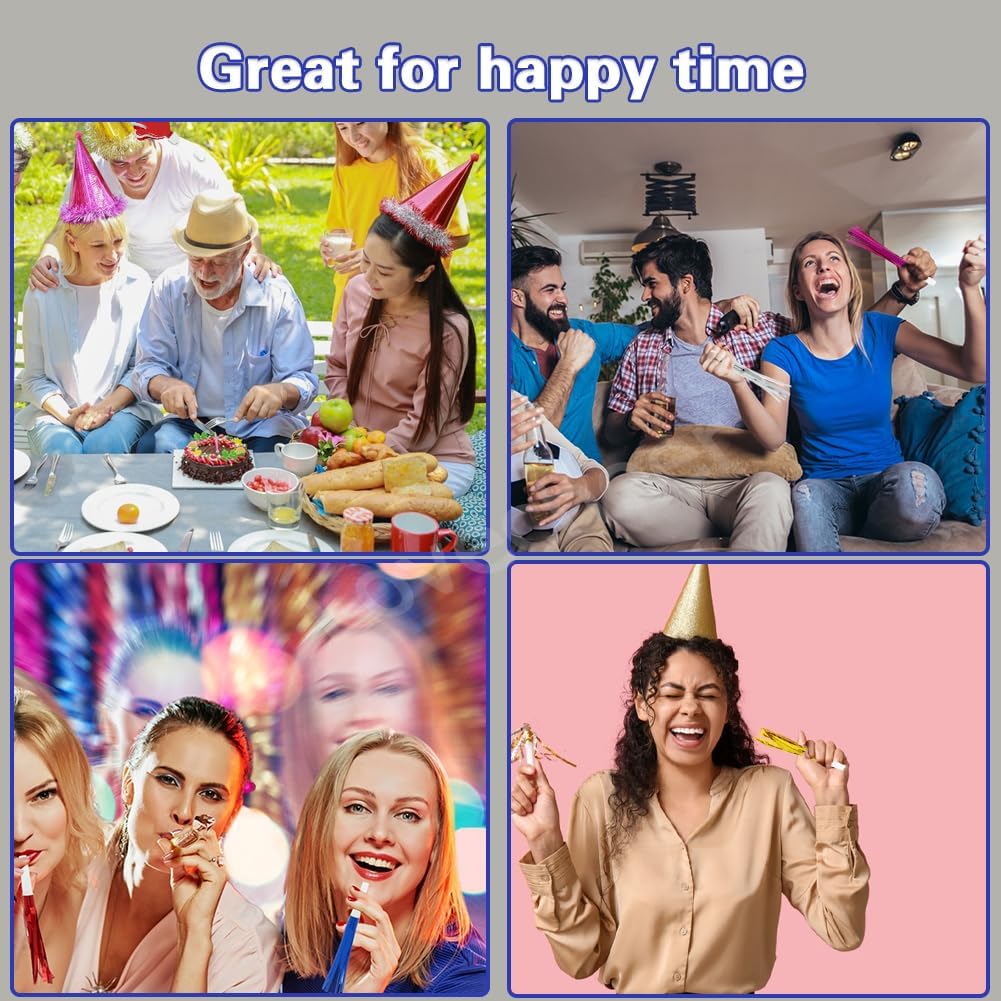 Lovecheer 24/60PCS Glitter Noise Makers Metallic Fringed Party Blowers for Adults Birthday Wedding Graduation 2025 New Years Musical Blowouts