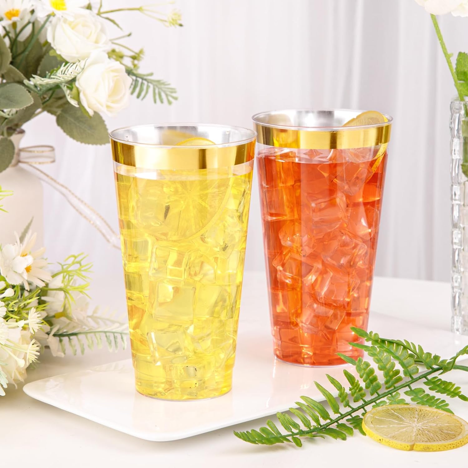 - Elegant Design: Our gold rimmed plastic cups are use the classic design with a decorative polished gold rimmed. These gold party cups will definitely give a deep impression for your guests at the event.