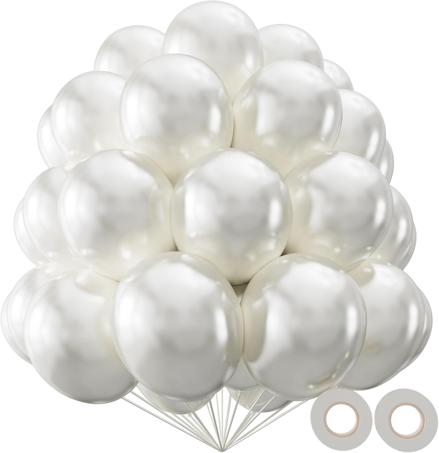 - 110-Count 12" Pearl White Latex Balloons:Premium bulk pack of 110 shimmering 12-inch balloons—perfect for weddings, upscale events, or elegant photo backdrops with a luxurious glow.