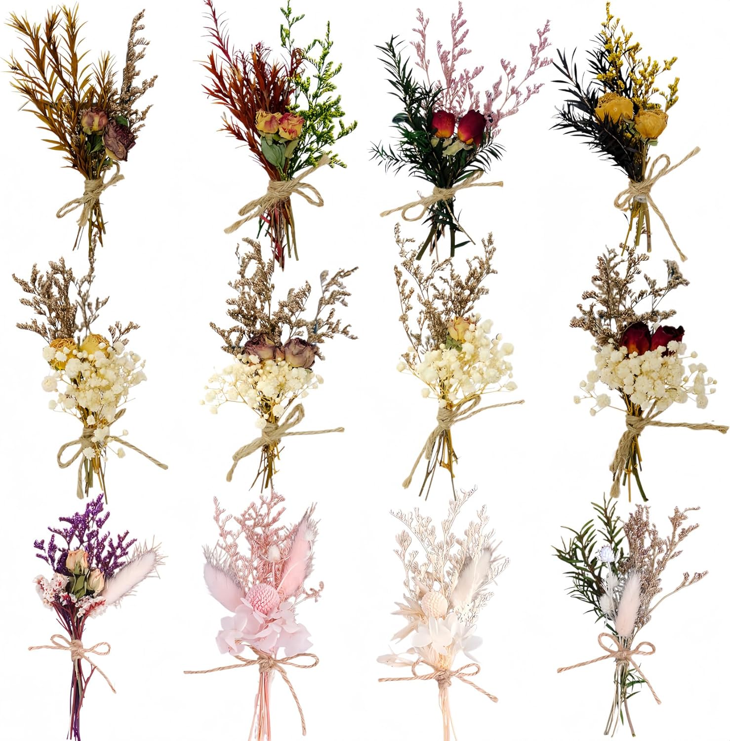 - Natural Material: dried flowers mini bouquets are made from high quality, naturally dried flowers and foliage, which is safe and reliable, strong and firm, not easy to fade, and won't cause any adverse effects on your skin, you can use it with confidence.