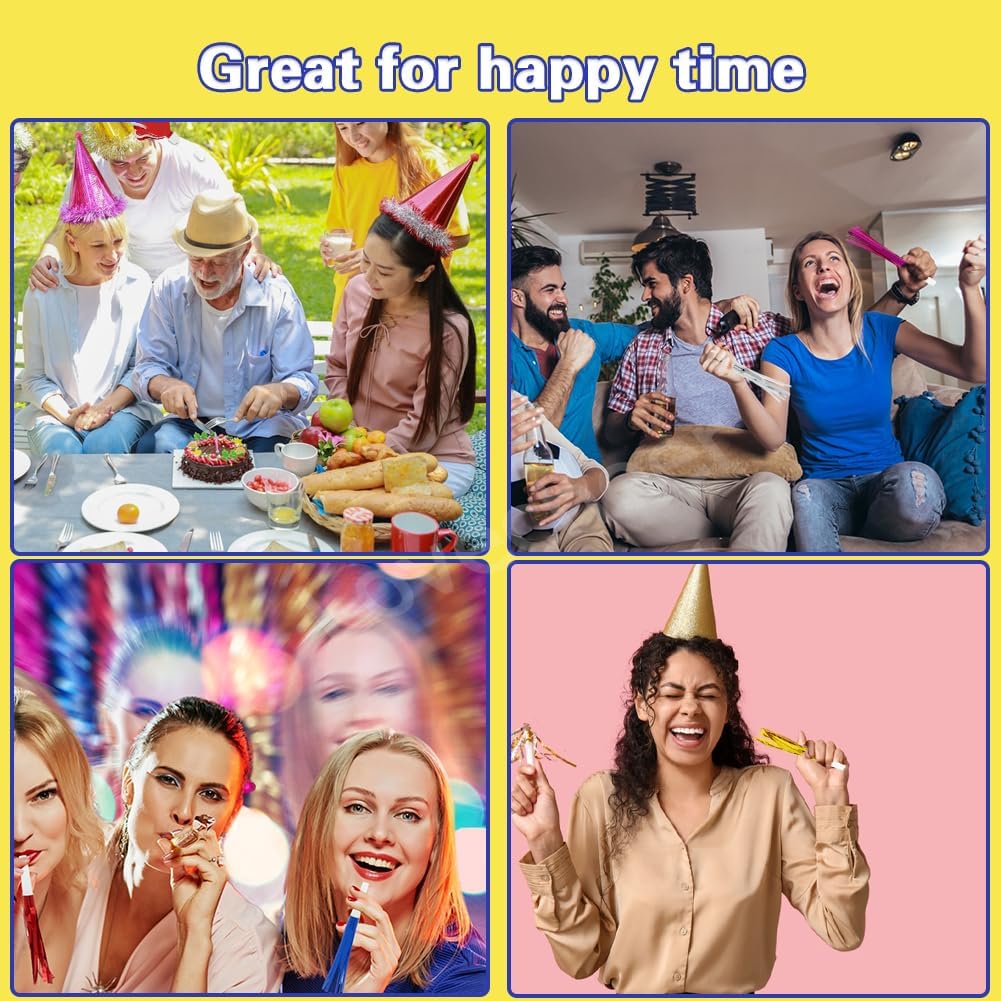 Lovecheer 24/60PCS Glitter Noise Makers Metallic Fringed Party Blowers for Adults Birthday Wedding Graduation 2025 New Years Musical Blowouts