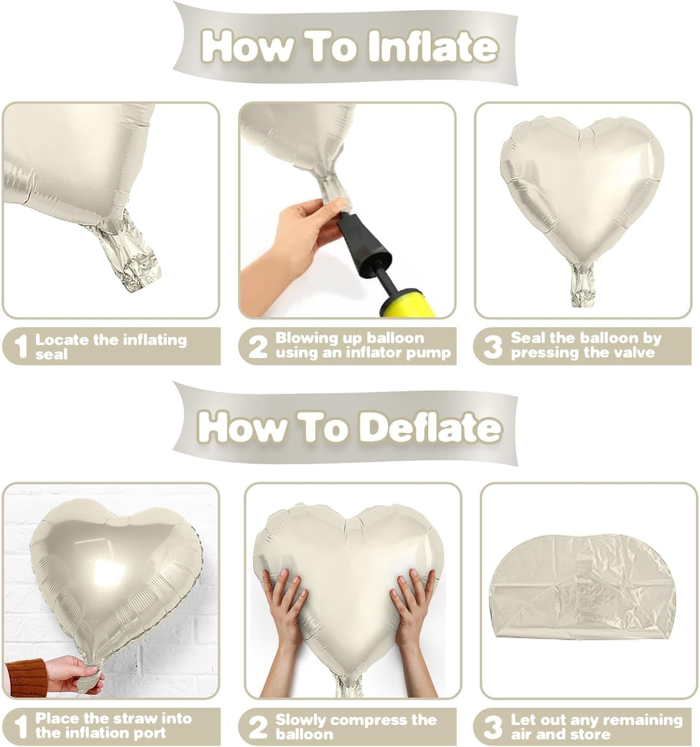 - Easy Setup: Inflate the baby pink white heart balloons with a balloon pump or helium tank. After inflating, secure the baby pink white heart balloons with the included ribbon for a polished look. These baby pink white heart balloons are easy to assemble and disassemble, making decorating quick and effortless.