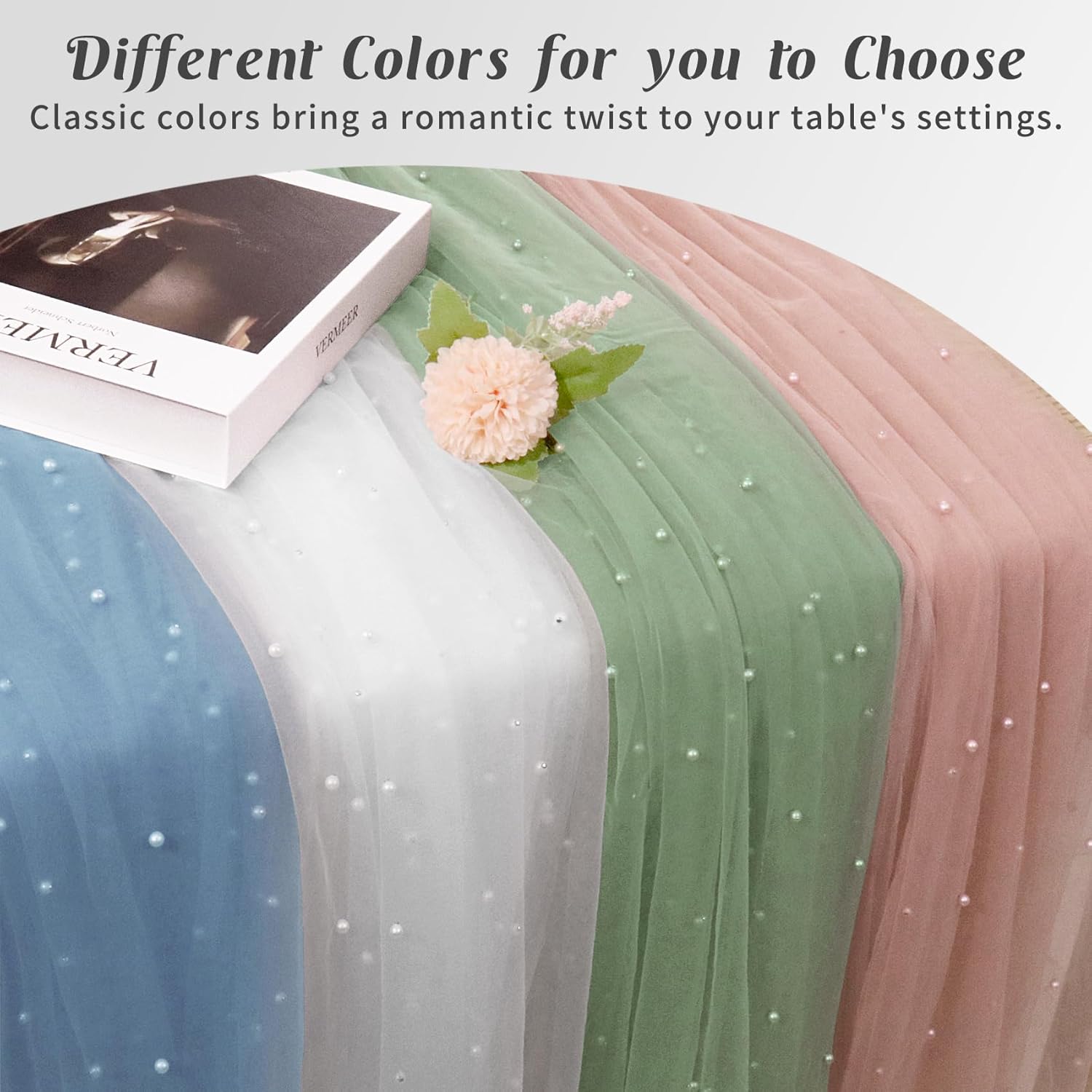 - 【Package Include】 You will receive 6 pieces of 29 x 120 inches pearl tulle table runners, the quantity is sufficient for your daily use and replacement needs, it's long enough to fit different size tables and chairs, These tulle table runner with pearls are skin-friendly. There are lots of different colors for you to choose. Perfect to decorate your tables.