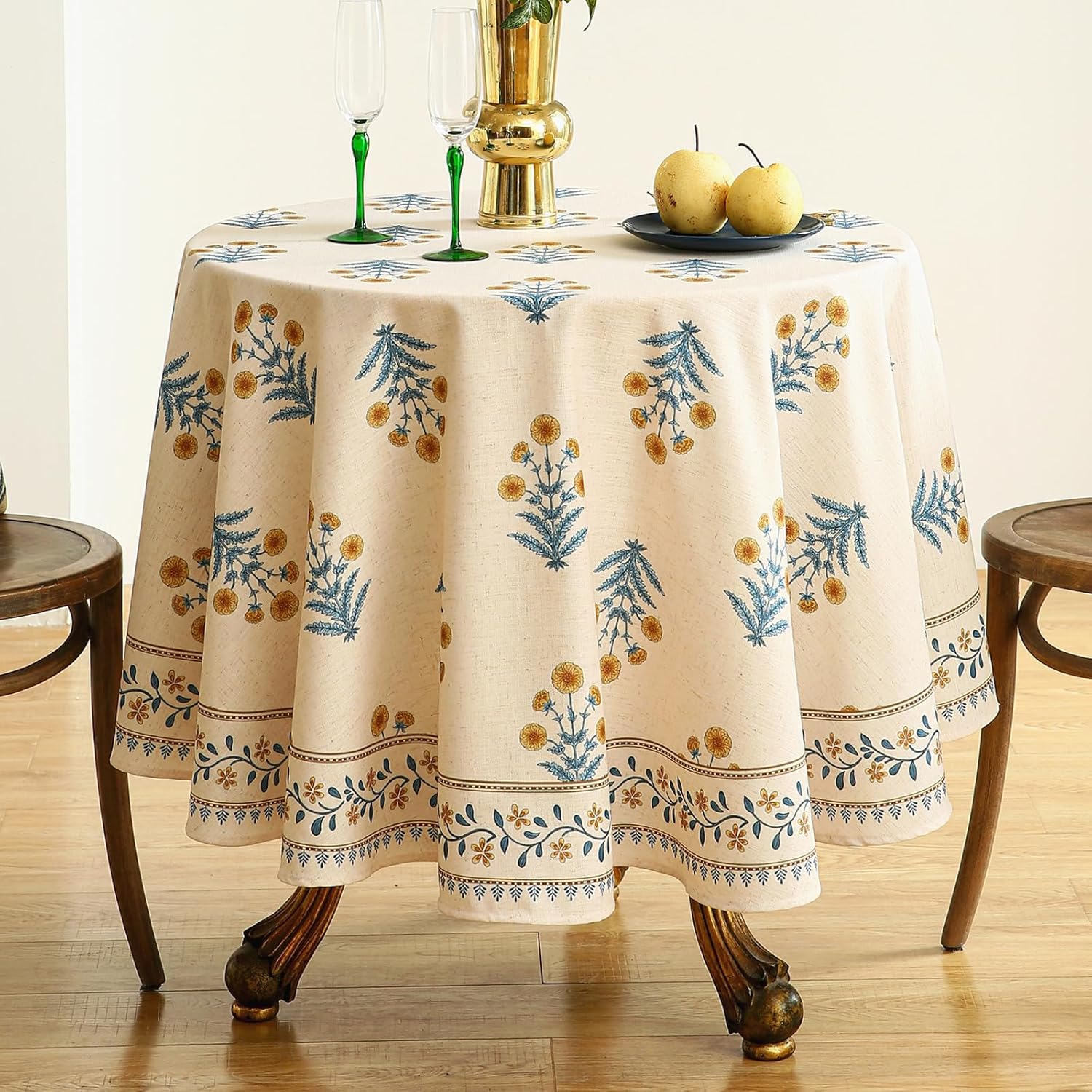 ISAENNE Designer French Pale Yellow Small Round Tablecloth,Linen Floral Table Cloth,Wrinkle Resistant Decor Tablecloths for Dining Thanksgiving Banquet Kitchen Party,Diameter 55"-Estevan A