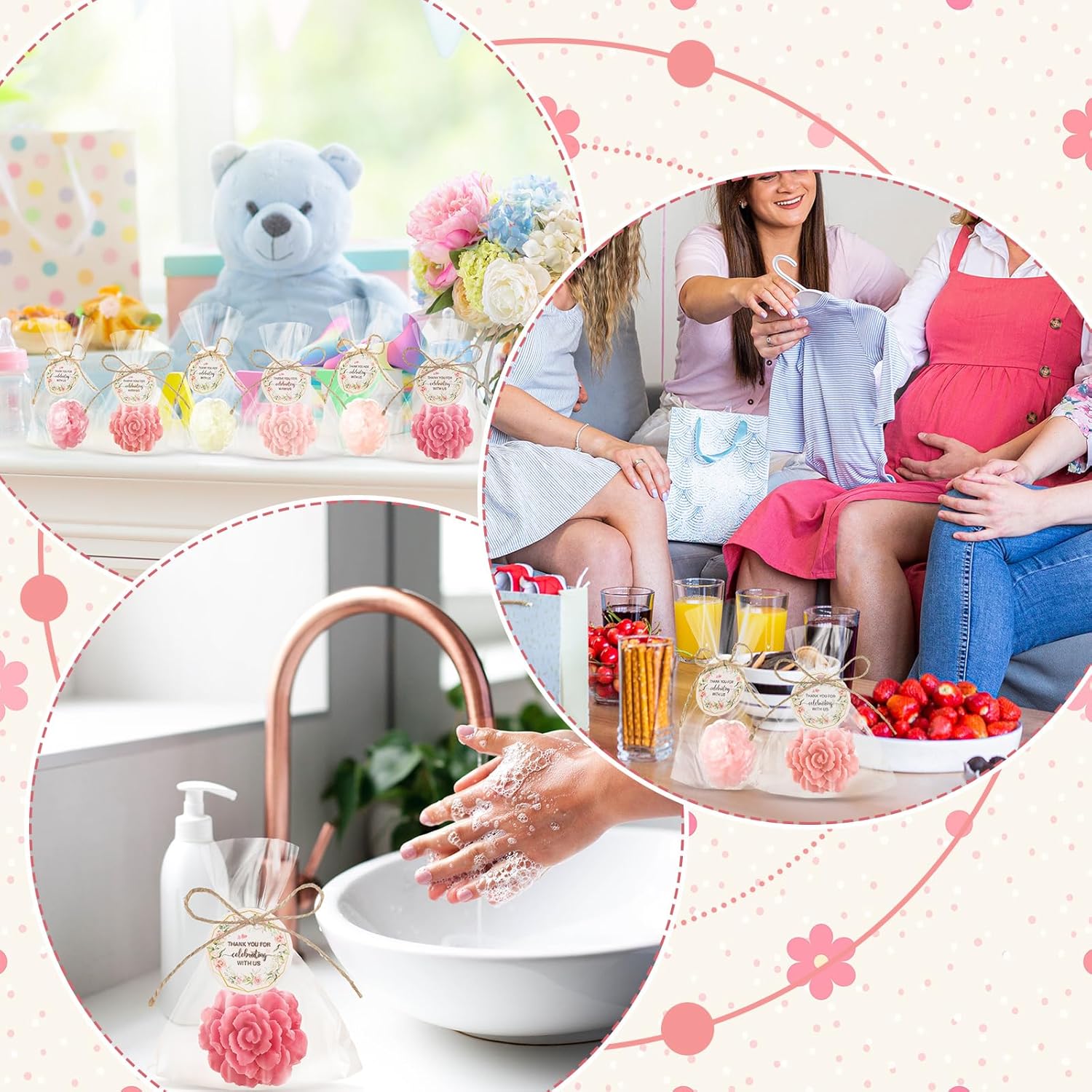 Demissle 20 Set Flower Mini Soaps for Guests Rose Soap Baby Shower Soap Favors with Thank You Tags for Wedding Bridal Guest Gift Party Favor(Dark Pink)