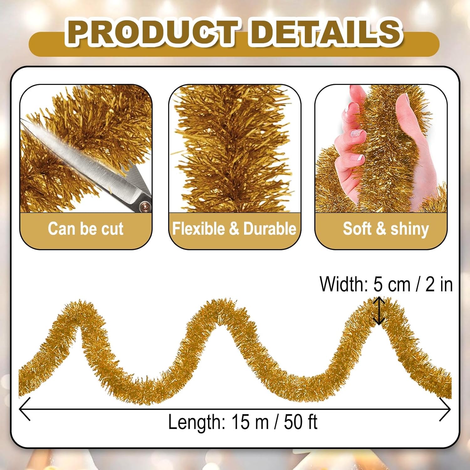 - Quality Material: tree garland Christmas decoration is made from quality PET material that ensures durability and long lasting use; This lightweight yet waterproof tinsel offers you a gorgeous decoration that can provide you with a comfortable decorating experience.