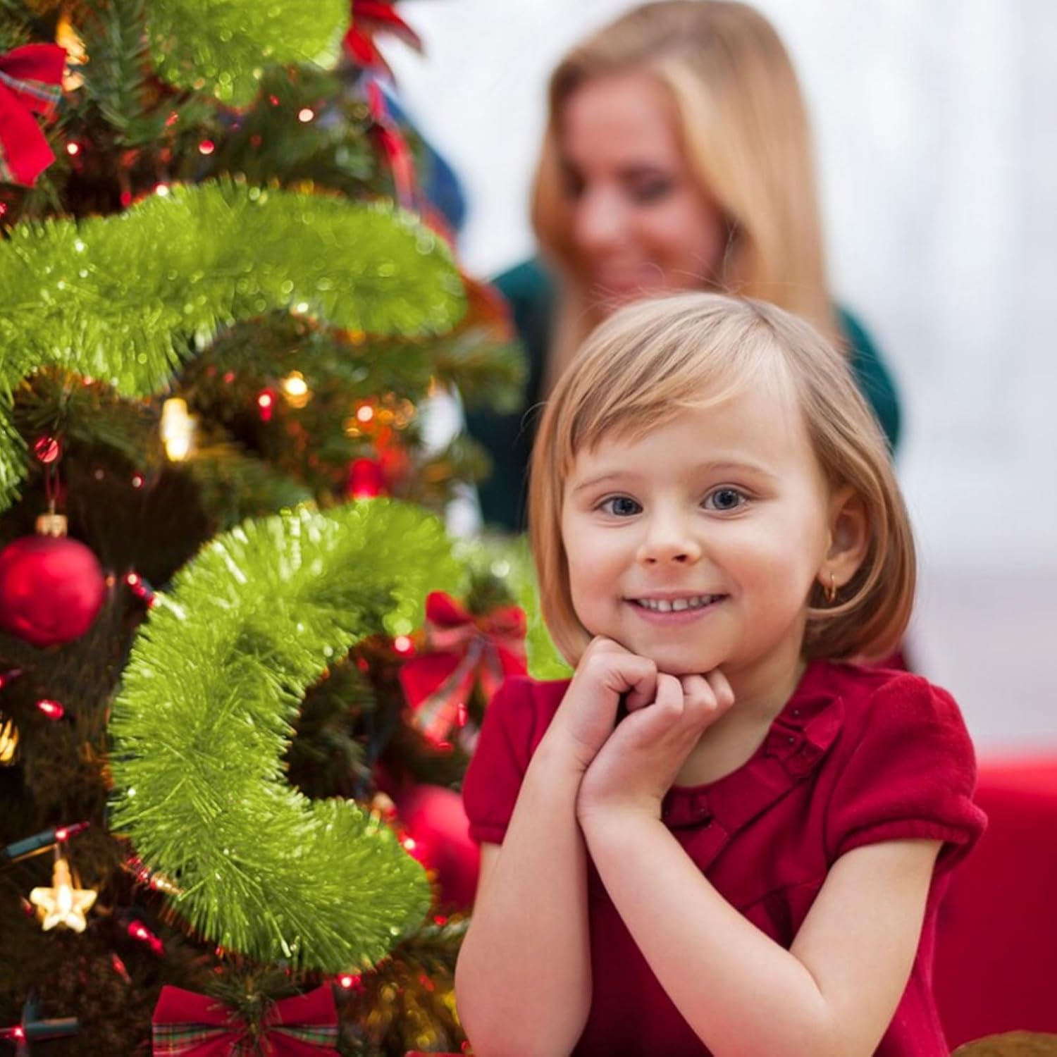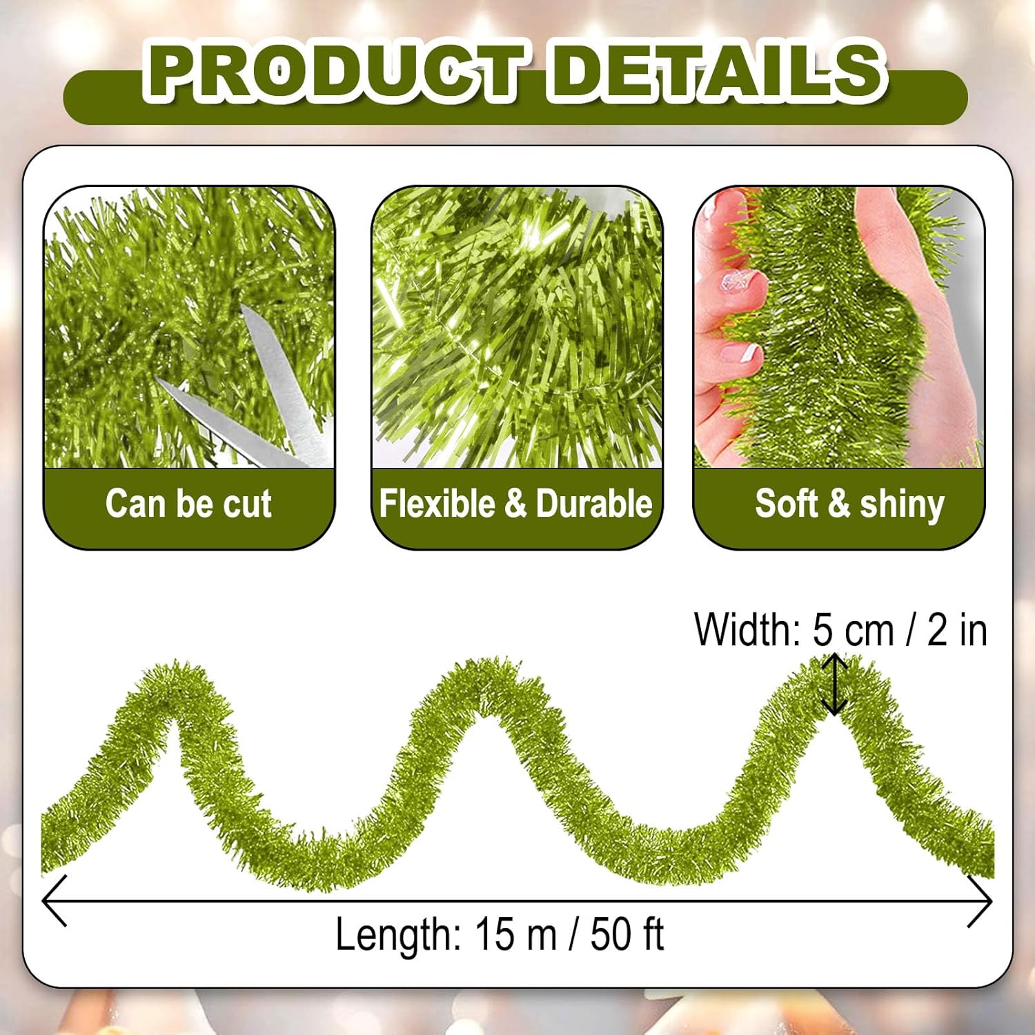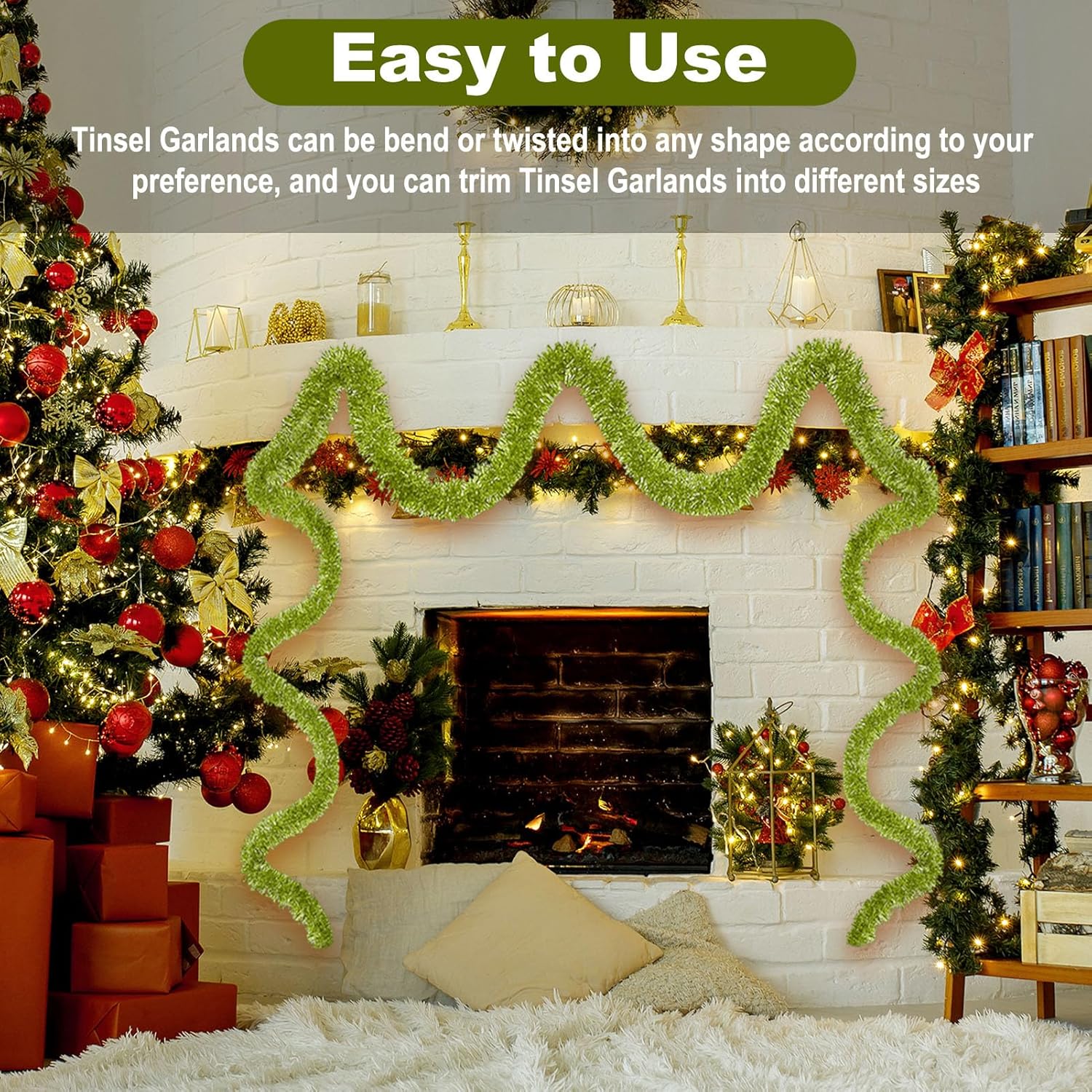 - Quality Material: tree garland Christmas decoration is made from quality PET material that ensures durability and long lasting use; This lightweight yet waterproof tinsel offers you a gorgeous decoration that can provide you with a comfortable decorating experience.