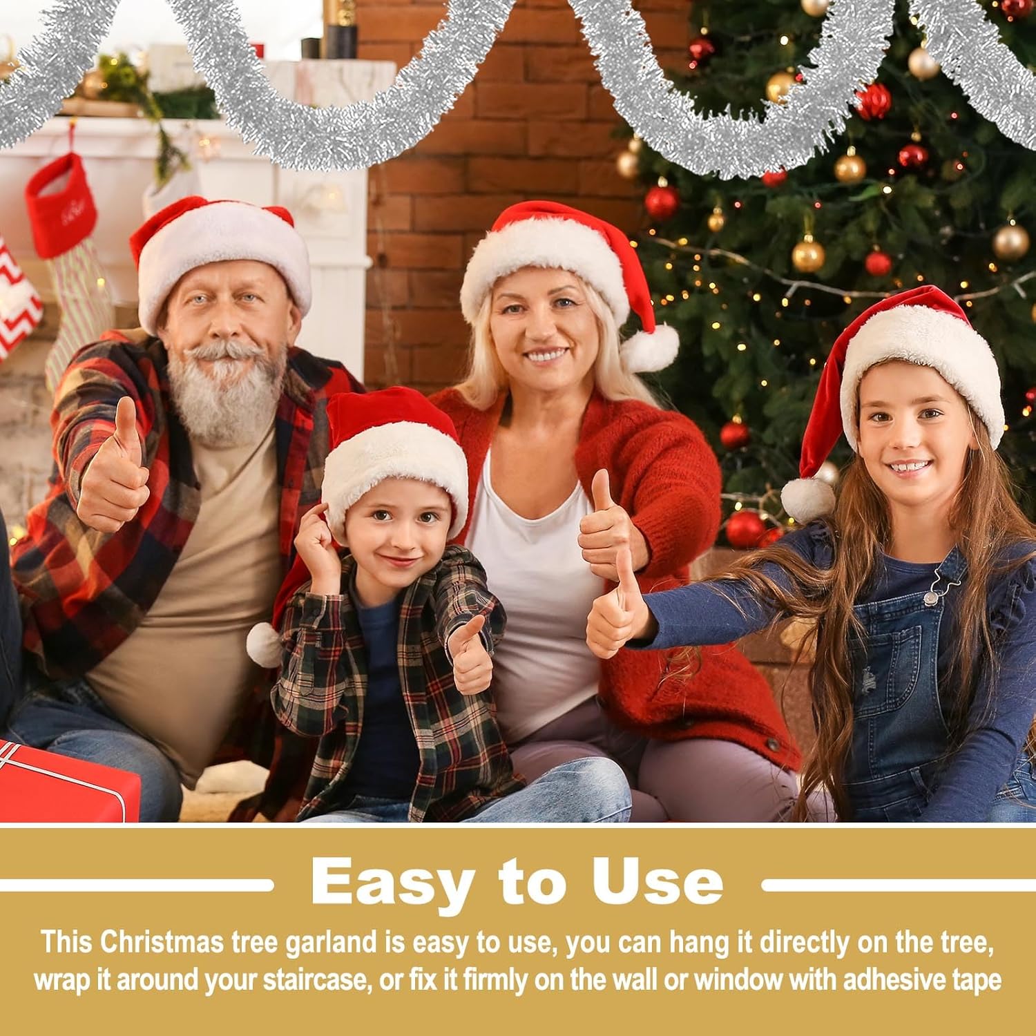 - Easy to Hang: Christmas tinsel garland include a soft, bendable wire inside, and easy to shape as different looks. You can also trim it into different sizes, twist them into various shapes as you like, or with the tape stick it on the wall, window, table, door, rail or any place you like, show the christmas glamour to make your party decoration for the home fun