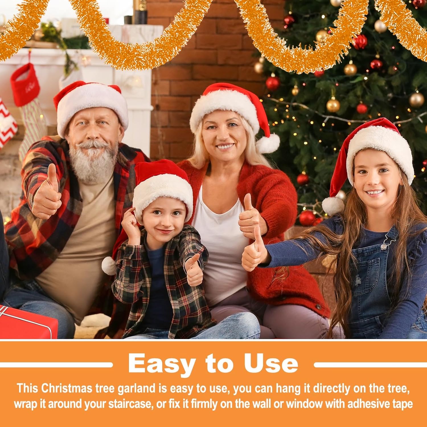 - Add Atmosphere: This garland christmas decorations add a bright and festive feel to your holiday decorations, with bright metallic tinsel reflecting the light and shining brightly, add to the festive atmosphere, bringing you a lot of fun, easy to attract your attention, thus you can have a happy party time with families and friends, classmates to celebrate important days