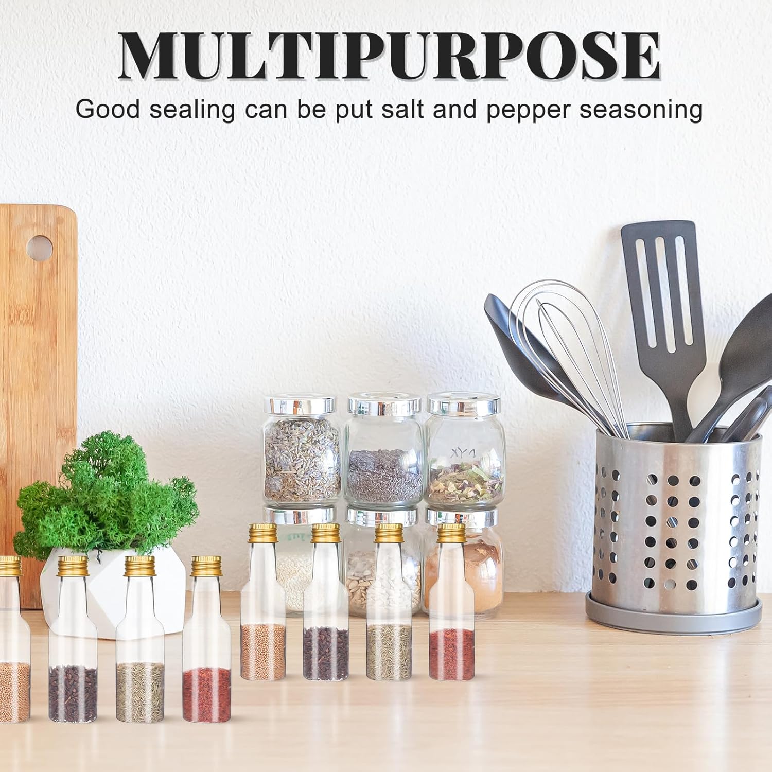 - 【Multiple Use】Our shot bottles with caps can be used to store wine, whiskey, juices, sauces, essential oils, syrups, hot sauces, and vanilla extracts as well as craft materials such as sequins, mini beads, and powdered pigments. After use, you can easily wash them with our cleaning brush and continue to use them. Please note that these mini bottles are not dishwasher safe!