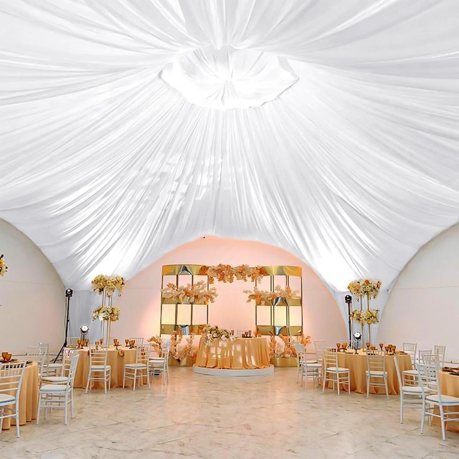 - 【Wedding Ceiling Curtain Widely Used】Wedding drapery ceiling can match well with many decorations, perfect for weddings ceiling, stages, receptions, parties, bridal and baby showers, birthdays, engagement, candy buffets, dessert tables, photography, ceremony and more. The sheer curtain can not only decorate the ceiling but also your arches, backdrop, curtains, chandeliers and so on.