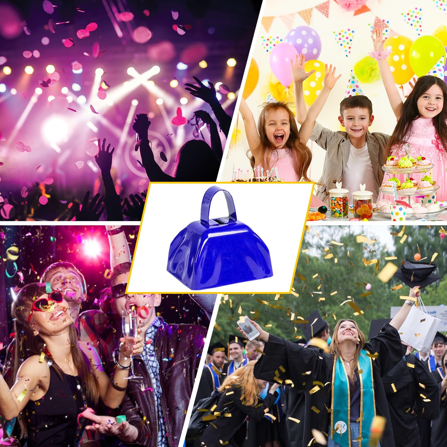- MULTIFUNCTIONAL COWBELLS: These versatile cowbells are perfect for creating festive noise at sporting events, holidays (Christmas, Halloween), weddings, parties, and more! They also serve as a handy signaling device for seniors or people with disabilities who need to attract attention