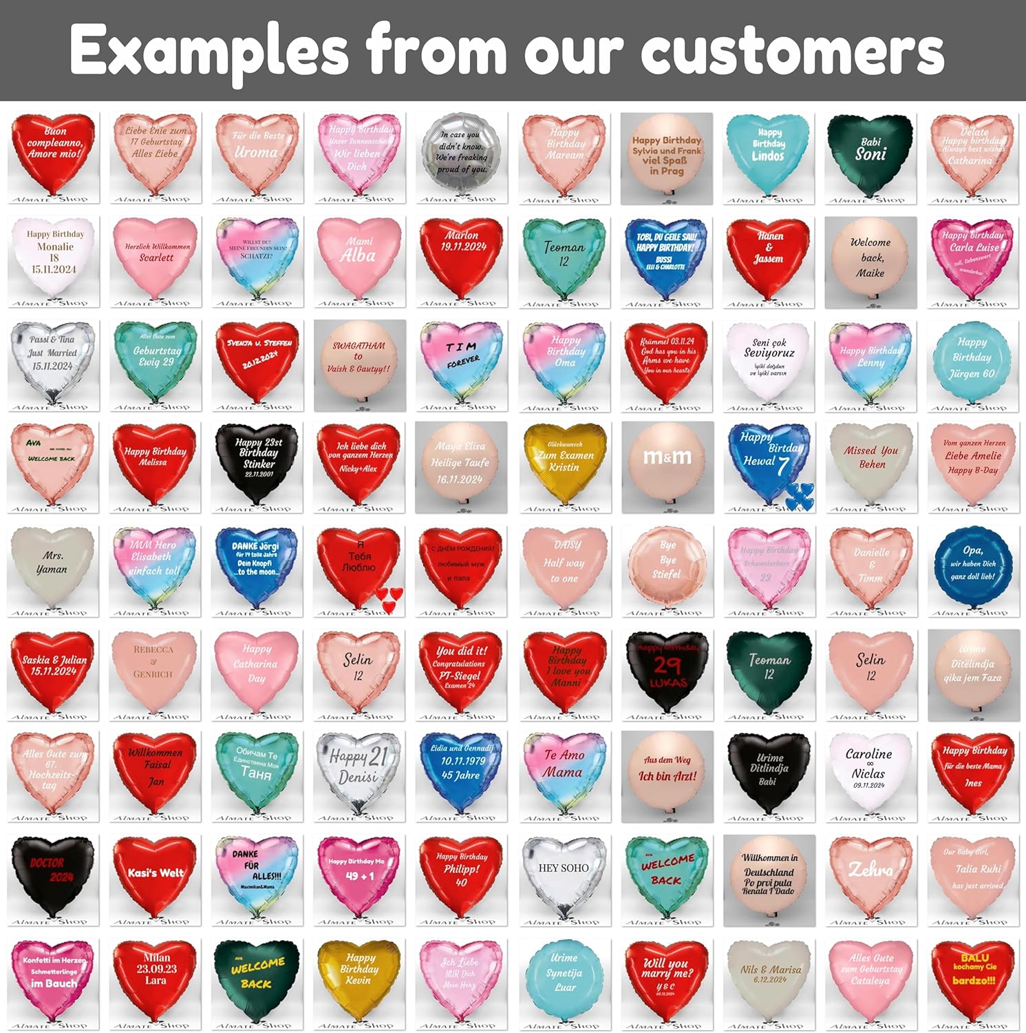 - Large choice of colours for heart balloons (satin or glossy) and inscription colour. Balloon size: approx. 19 Inch. Finished product, you only need to fill the balloon with helium or air.