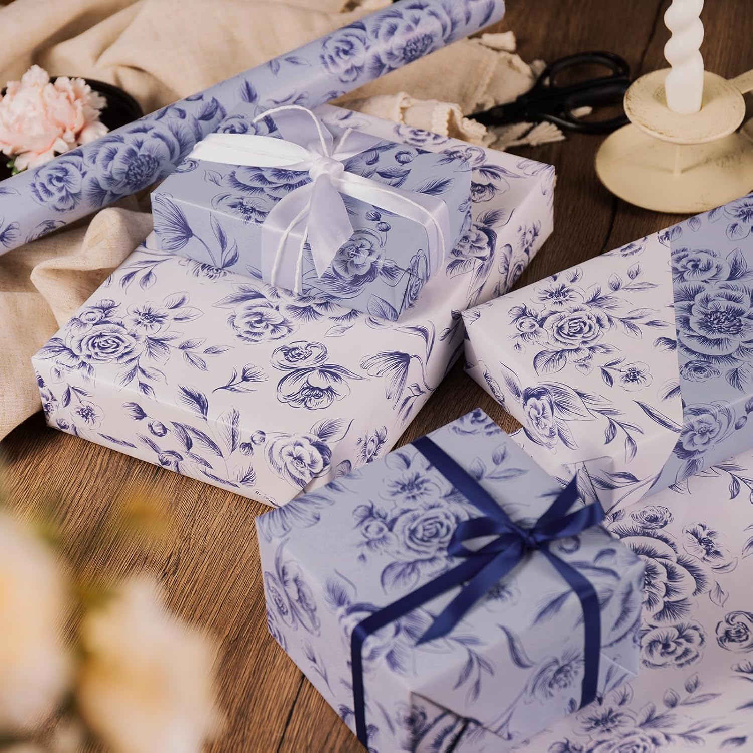 - Elegant Purple Floral: Featuring a beautiful purple floral design, this wrapping paper adds a touch of elegance to your gifts, perfect for any occasion such as birthday, wedding, Mother's day and more.