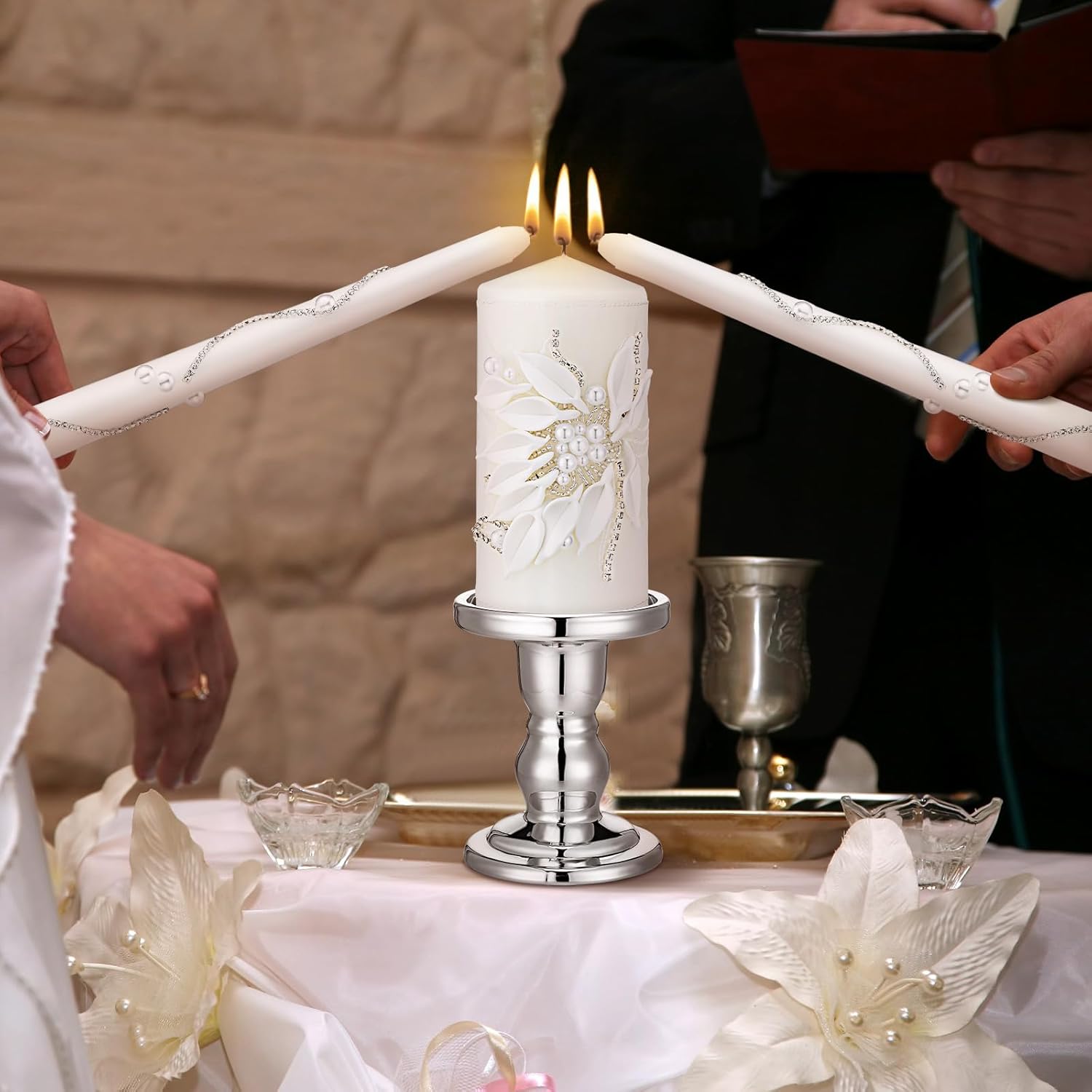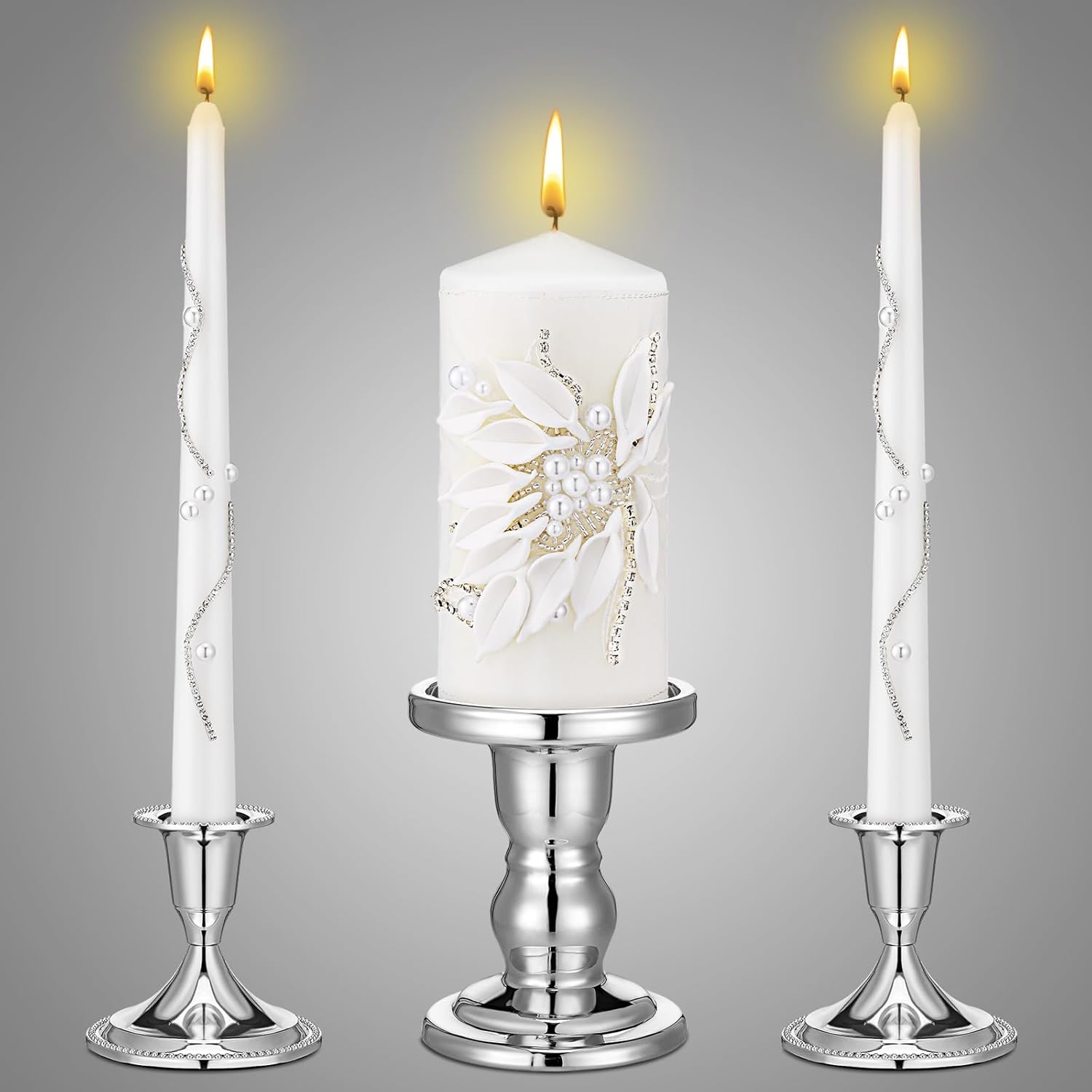 - What You Will Receive: package includes 1 set/ 3 pieces of unity candles and 3 pieces of silver candle holders for pillar candles, which are well matched to decorate the table and party with a romantic atmosphere; They are well packed to ensure a safe arrival
